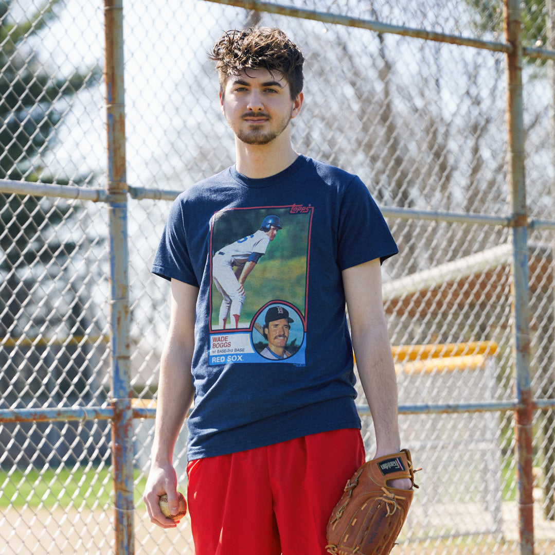 Tear open another classic Topps rookie T-shirt with our super-soft ode to number 26, Wade Boggs himself. As a twelve-time All-Star, 5-time AL batting champion and two-time Gold Glove winner, Boggs is considered one of the greatest hitters of all time and a legendary Boston Red Sox champion.