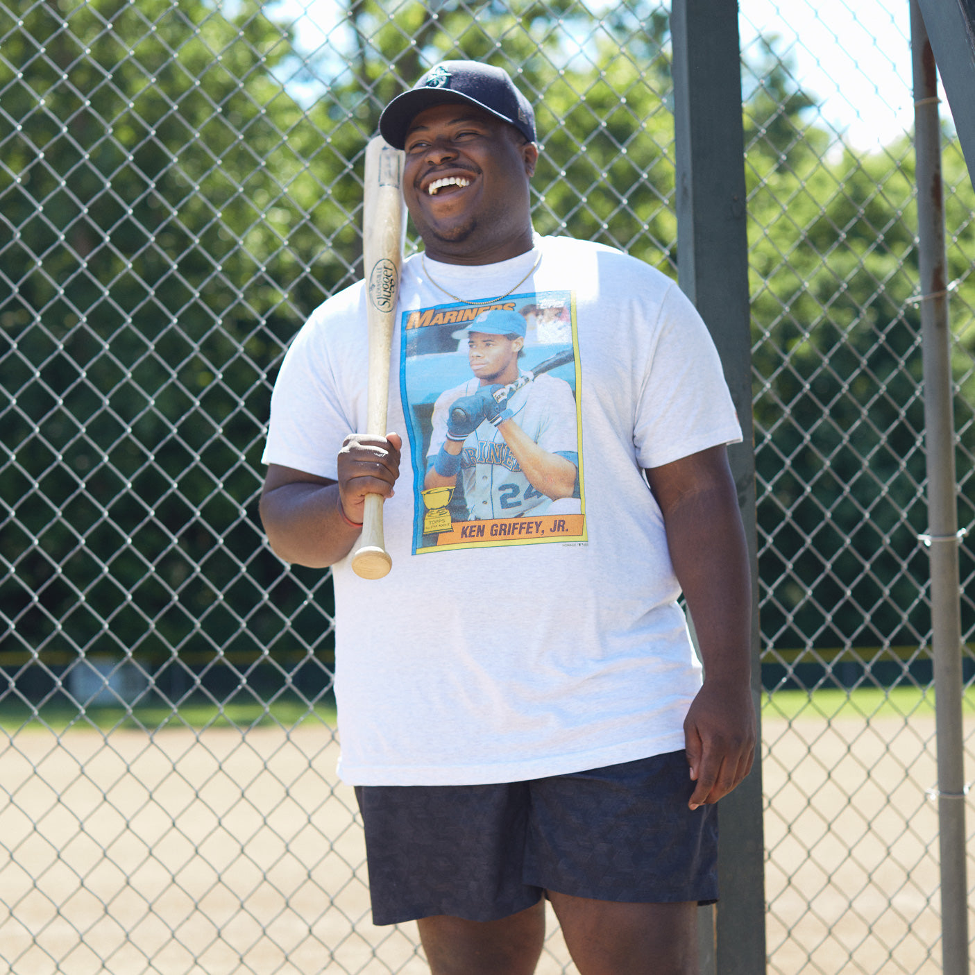 Snag a collector’s item with our super-soft T-shirt and ode to Ken Griffey Junior’s All-Star Rookie Topps card. The 1990 season saw Griffey win the first of what would be ten straight Gold Gloves in center field, and along with his father Ken Griffey Senior, become the first father-son duo to play on the same team at the same time.