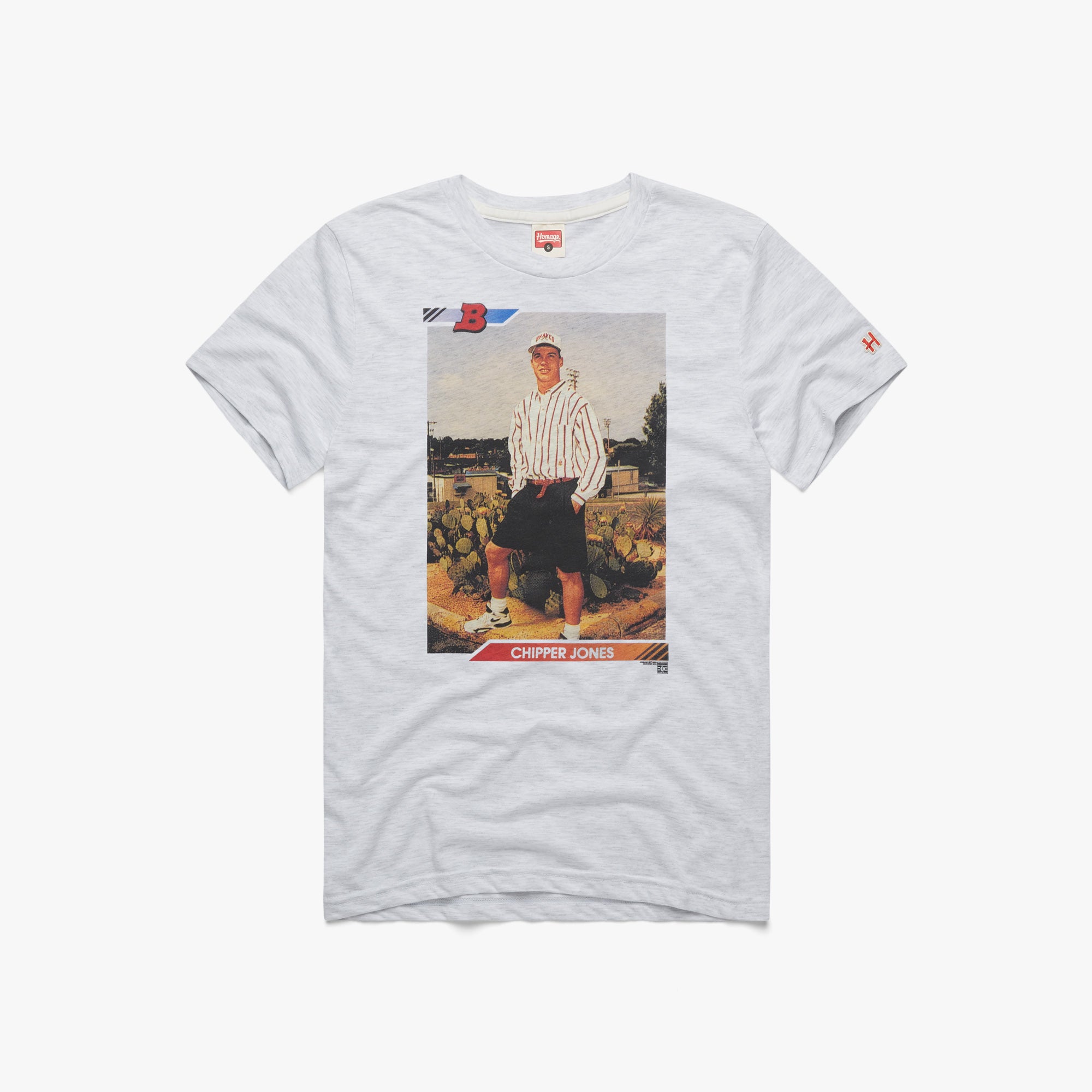 Rep an Atlanta Braves legend’s first year in the majors with a super-soft T-shirt for the 1992 Bowman card for the one and only Larry Wayne “Chipper” Jones Jr. Legendary Hall-of-Famer Chipper Jones is one of the greatest Braves of all time, and his rookie card is up for grabs!