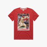 Topps! Tear open a wax pack and Pay Homage to Bryce Harper with our super soft T-shirt. He’s the $330 million superstar who brought swagger back to Philly. Our tee celebrates the 2019 Topps Update “Welcome to Philly” card (#BH‑19), Harper’s first Phillies base card. Released as fans buzzed over his arrival, it is known as “The First Red Card”, marking the start of his Philadelphia legacy and his takeover of Ashburn Alley.
