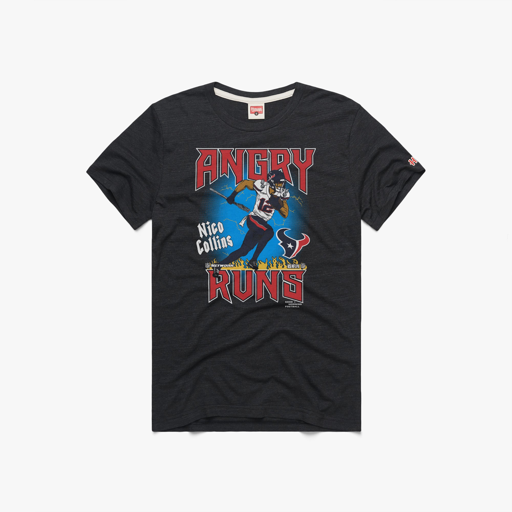 Boom! Rep 2023’s most furious plays with an official Angry Runs tee for Nico Collins! Every week of the NFL season Good Morning Football’s Kyle Brandt crowns another Angry Runs winner, and the Houston Texans’ wide receiver snagged Week 17’s scepter. Pay homage.