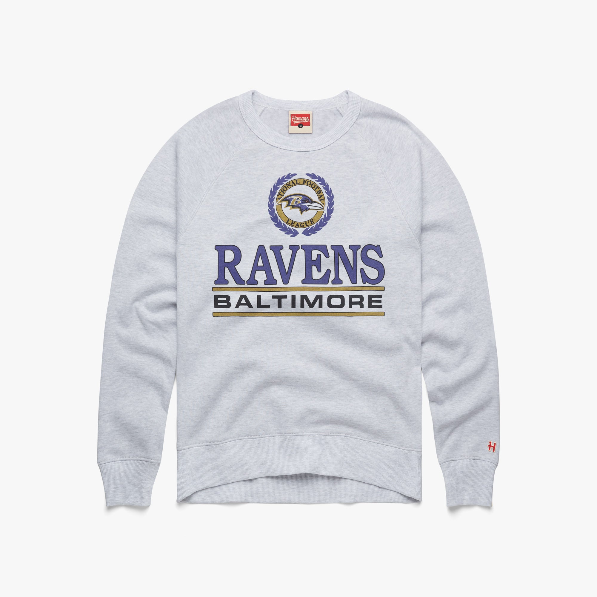 Old school vibes straight from the catalog of your throwback NFL dreams: it’s our super-soft Baltimore Ravens Crest Crewneck. Pay homage.