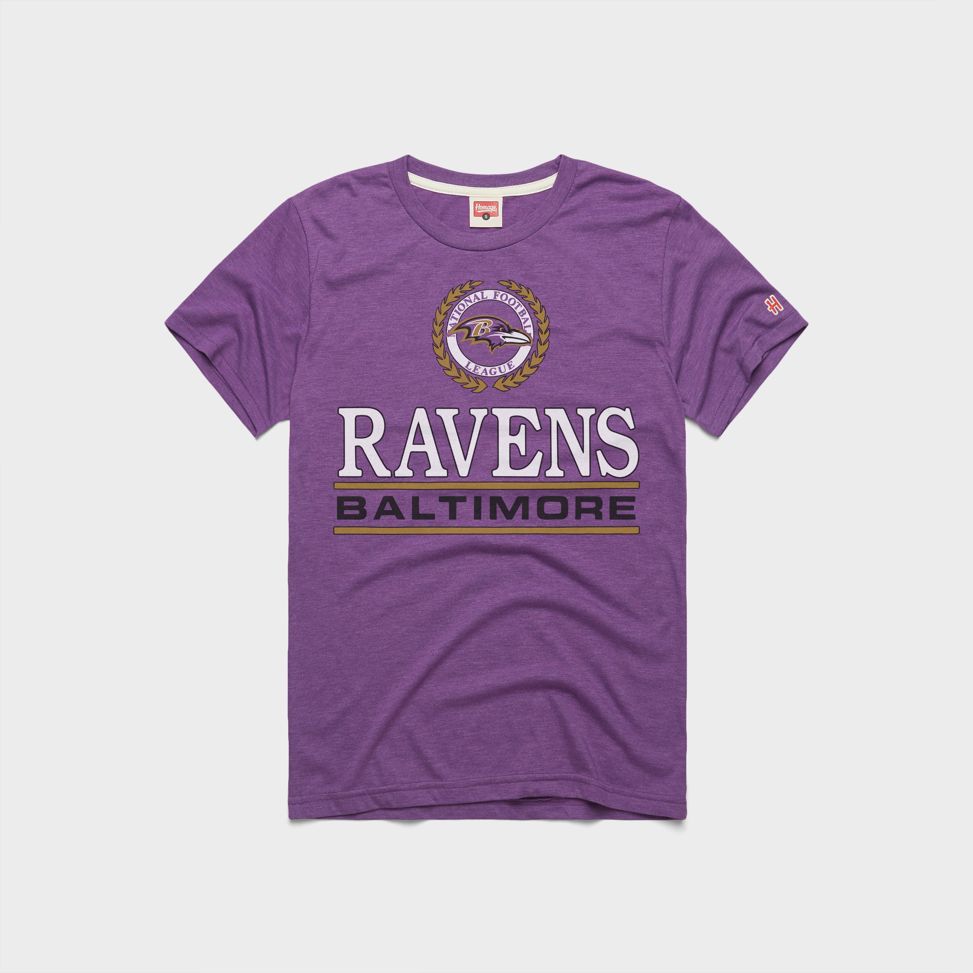 Old school vibes straight from the catalog of your throwback NFL dreams: it’s our super-soft Baltimore Ravens Crest T-Shirt. Pay homage.
