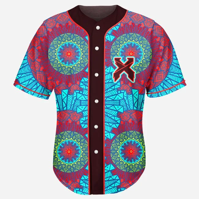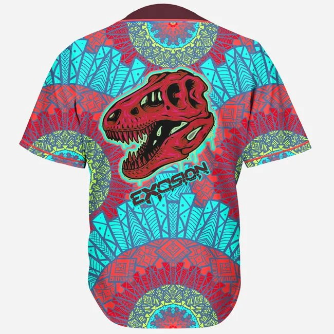 Beautiful Geometric mandala seamless pattern excision t-rex rave baseball jersey for EDM festivals