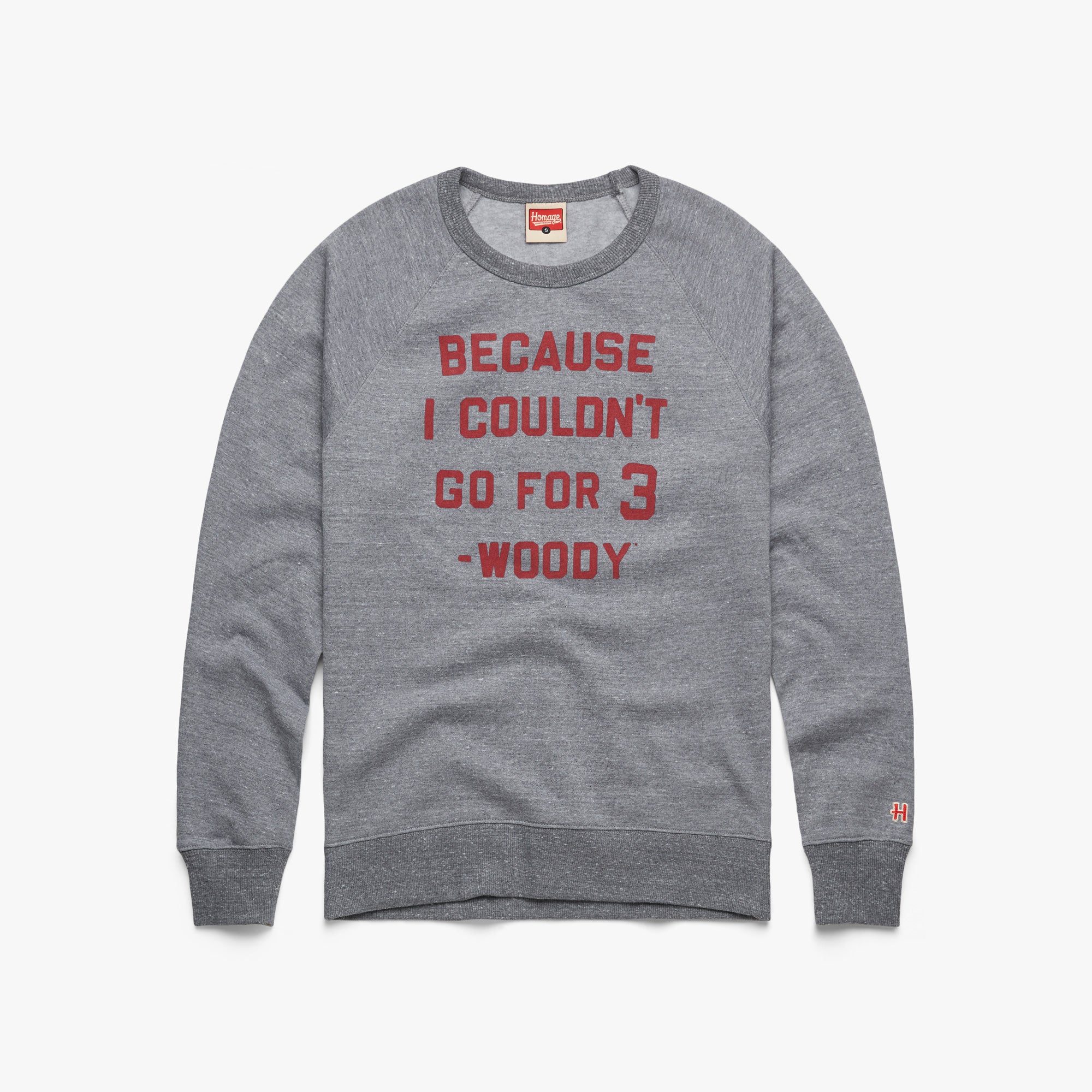 It’s a 1968 Woody Hayes original that’s become part of Buckeye lore: when asked why he went for the two-point conversion instead of an extra point when Ohio State led Michigan 50-14 in the final minutes of the fourth quarter, Hayes reportedly said, “Because I couldn’t go for 3”. The story is the stuff of legend, and its veracity is…somewhat questionable, but we’re sticking by it with a super-soft sweatshirt to rep one of the Buckeyes’ best coaches of all time. Pay homage.