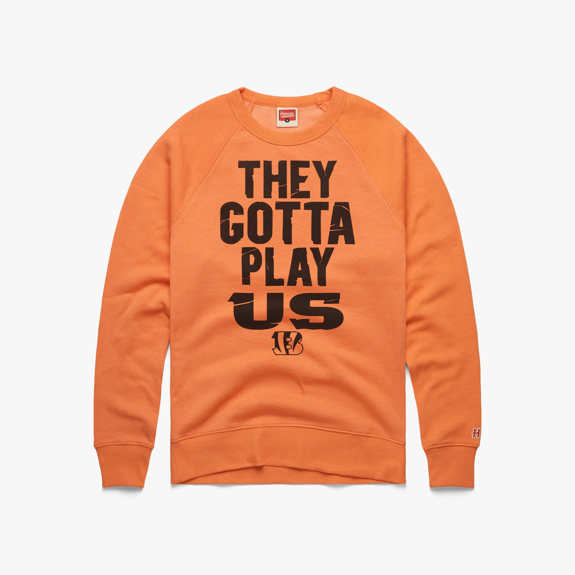 The Cincinnati Bengals locker room motto says it all: “They Gotta Play Us.” Rep the winning attitude of the Bengals in a super-soft sweatshirt and pay homage. WHO DEY!