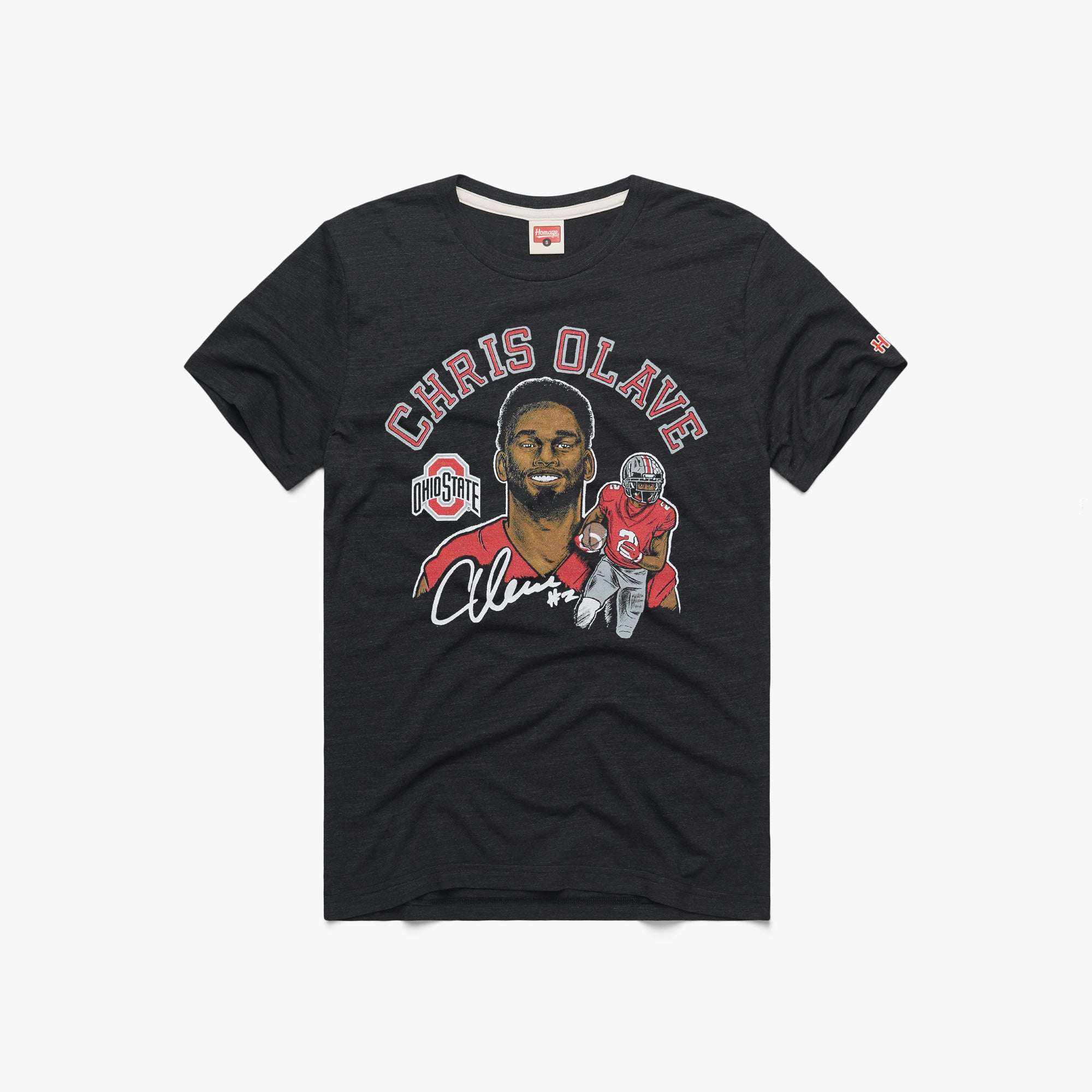 OH-IO! Buckeye wide receiver Chris Olave is a central part of the OSU squad’s current success, and we’re repping that talent with a super-soft tee for the Scarlet and Gray superstar. Go Bucks!