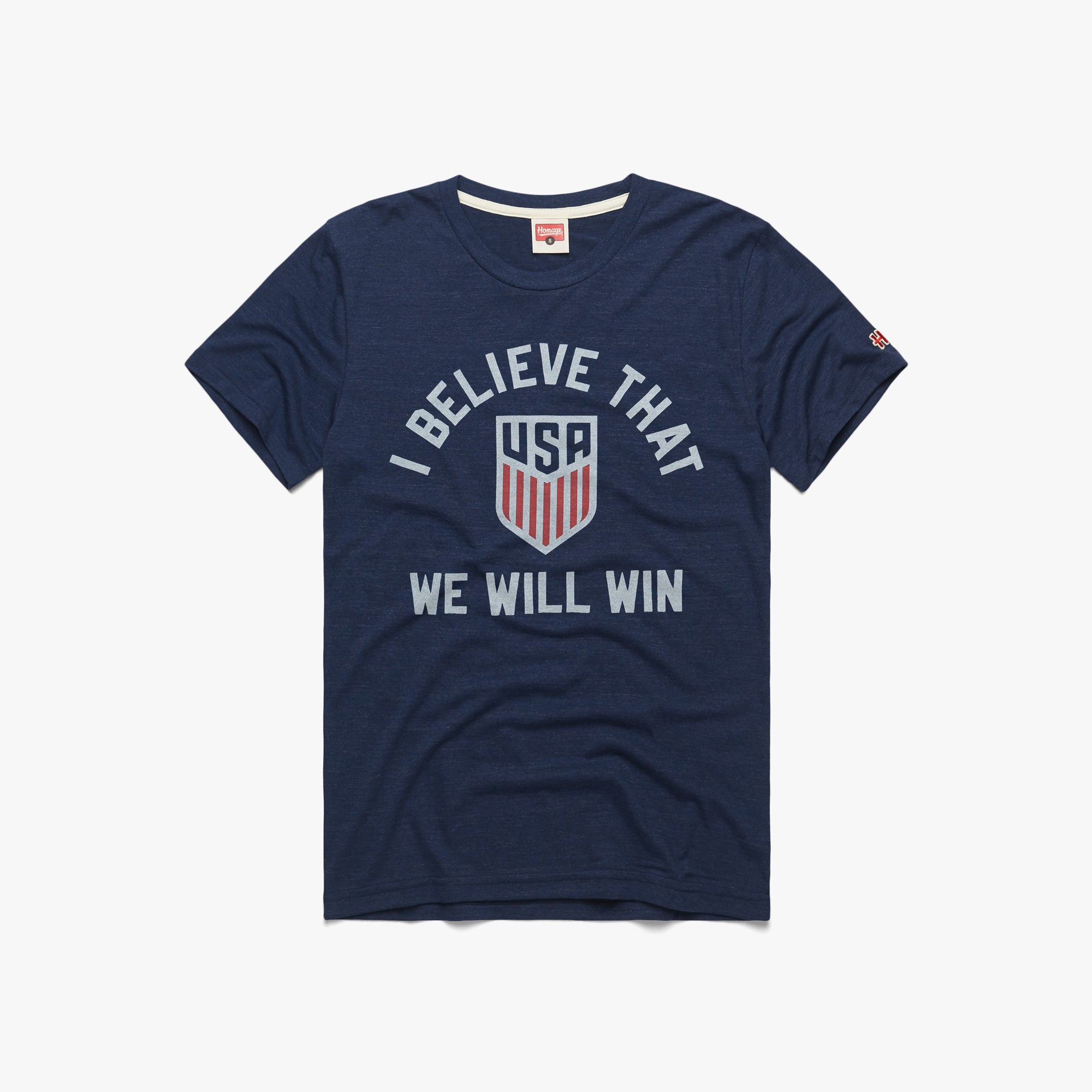 You know the chant – “I Believe That We Will Win!” – it’s the catchphrase for the USMNT and a crowd favorite. With its beginnings in the US Naval Academy, the chant was even featured in several ESPN ads during the run up to the World Cup. Pay homage to the Red, White and Blue’s call to battle and rep the USMNT in style.