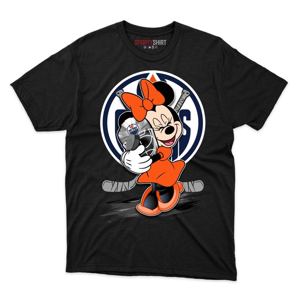 Celebrate your team spirit with the Edmonton Oilers Minnie Mouse Ball T-Shirt. Featuring a cute Minnie Mouse design paired with bold Oilers colors, this tee brings a playful touch to your fan collection. Comfortable and stylish, it’s perfect for game days or everyday wear.