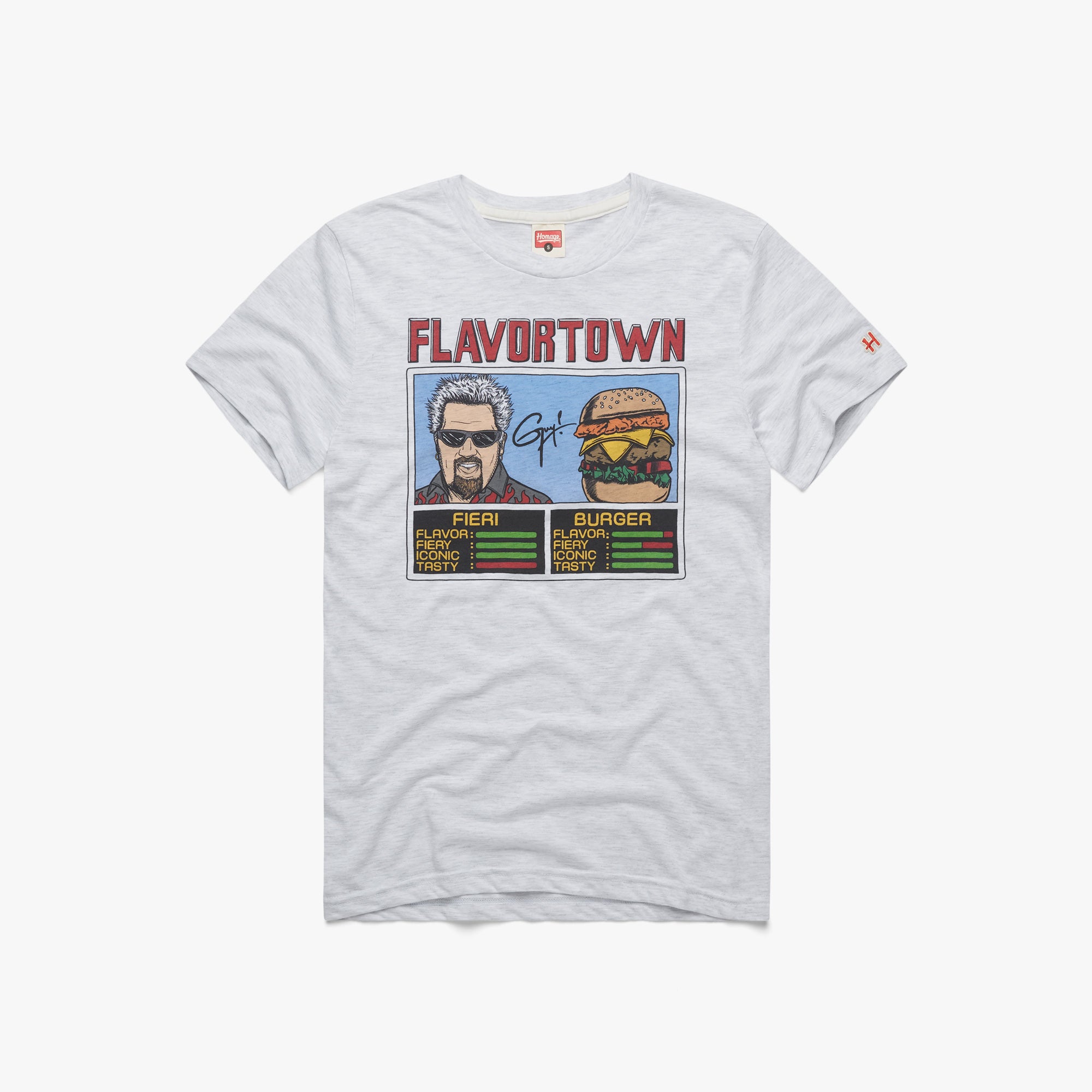 Boomshakalaka! This dream duo is the ultimate in flavor: Guy Fieri, and one of Guy Fieri’s favorite things to eat. Rep the Mayor of Flavortown and the…cheeseburger of Flavortown with this super-soft tee. Put some sauce on it!