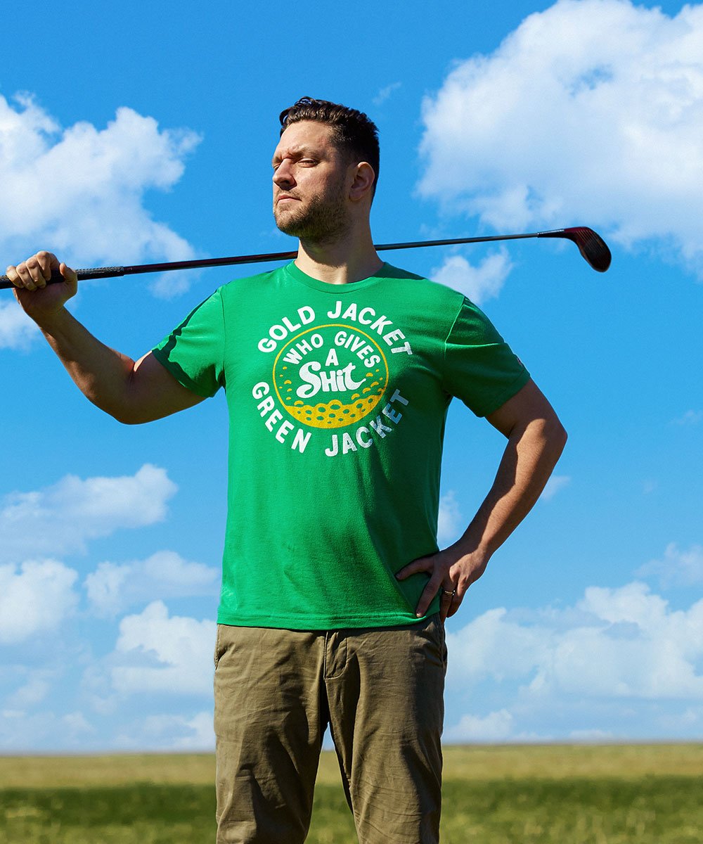 You win the Open tomorrow? You might just get this green tee. Rep that little golf movie from 1996 with your very own prize winning outfit, and get ready for the pros, because you’re in our world now, grandma. Tap, tap, taparoo!
