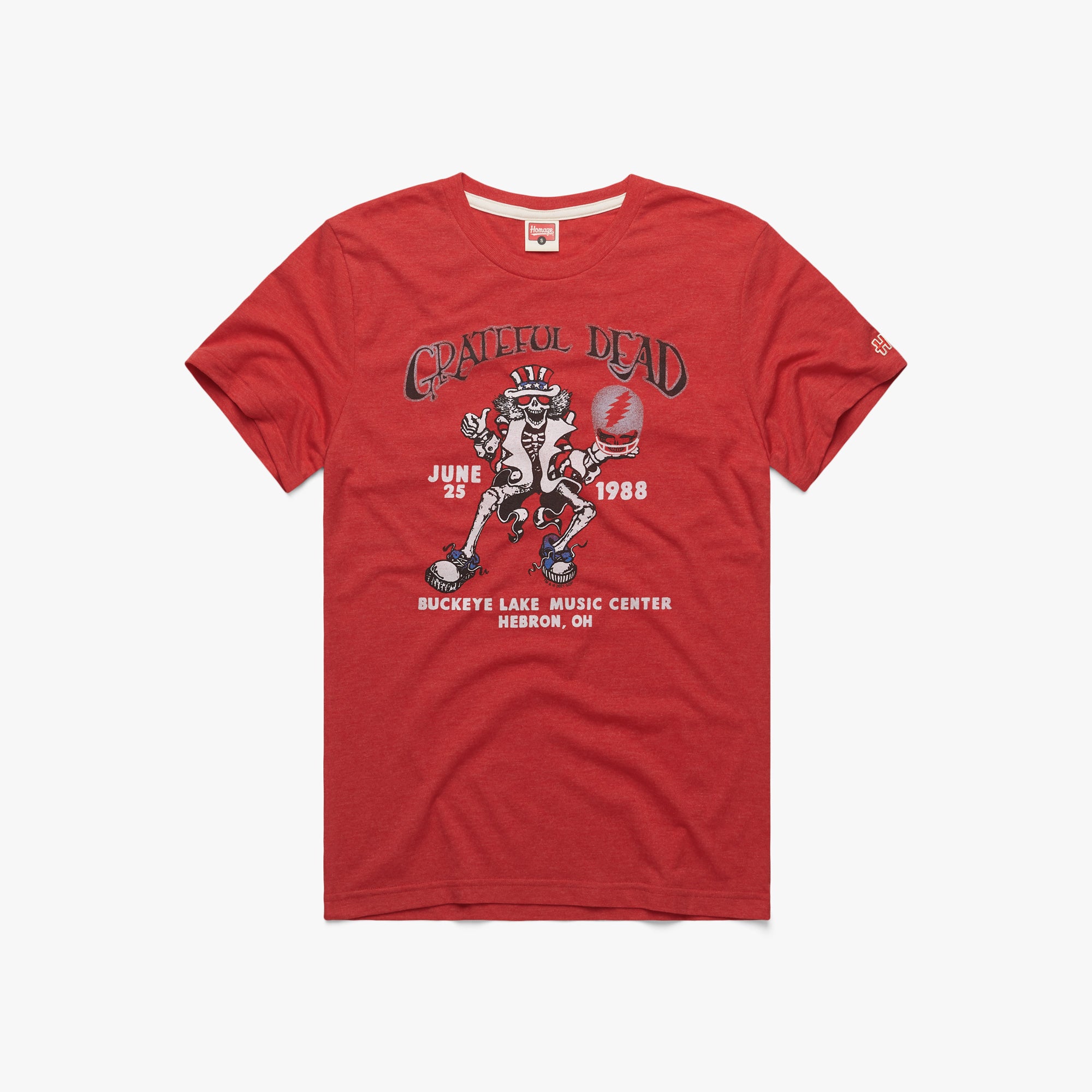 Climb aboard the bus and treat yourself to a long, strange trip: our tee that pays tribute to the Grateful Dead’s show at Hebron, Ohio’s Buckeye Lake Music Center on June 25th, 1988. Jerry Garcia and company’s famously long, virtuosic live shows produced a tribe of devoted followers we now call the Deadheads, and we have a feeling you may just be one of them. Pay homage.