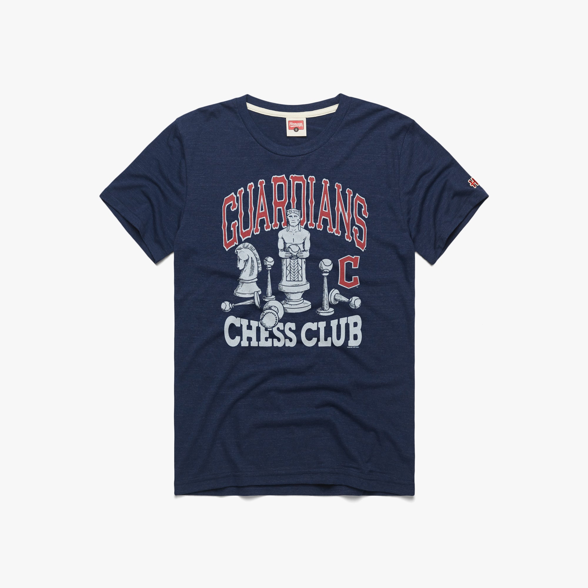 Checkmate, Cleveland. In 2022 the Guardians hosted the John Marshall High School chess team in a tournament at Progressive Stadium, and our super-soft look reps the budding relationship between the Cleveland squad and one of the best youth chess teams in the nation. Though Guardians players Steven Kwan and Austin Hedges put up a valiant effort, the high schoolers prevailed – but a beautiful friendship and passion for chess was born.