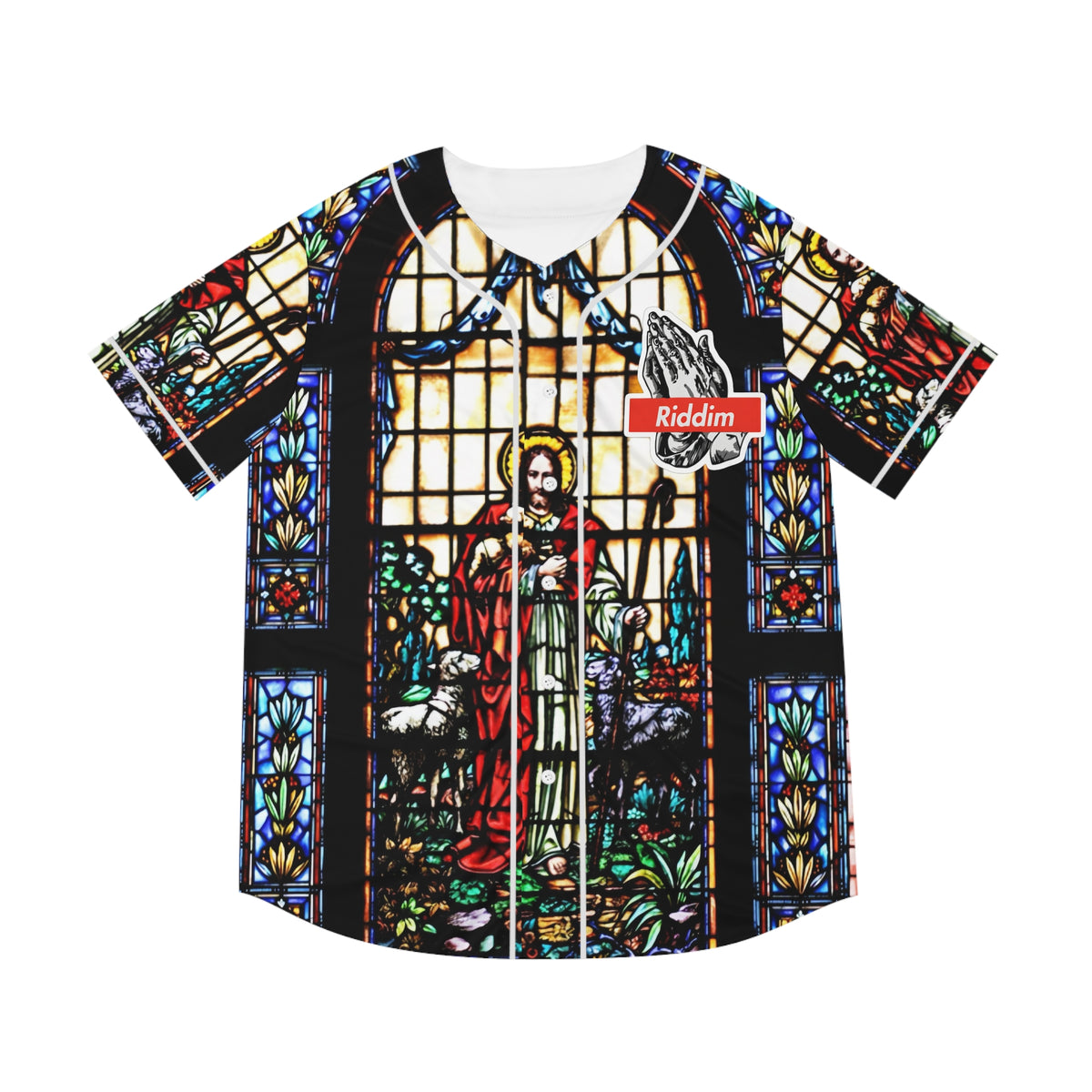 rave jersey, riddim jersey, dubstep jersey, Jesus rave jersey, stained glass rave jersey, EDM clothing, festival wear, holy bass, praying hands shirt, Christian rave outfit, basshead apparel, unisex rave gear, EDM fashion, spiritual rave clothing, DJ merch