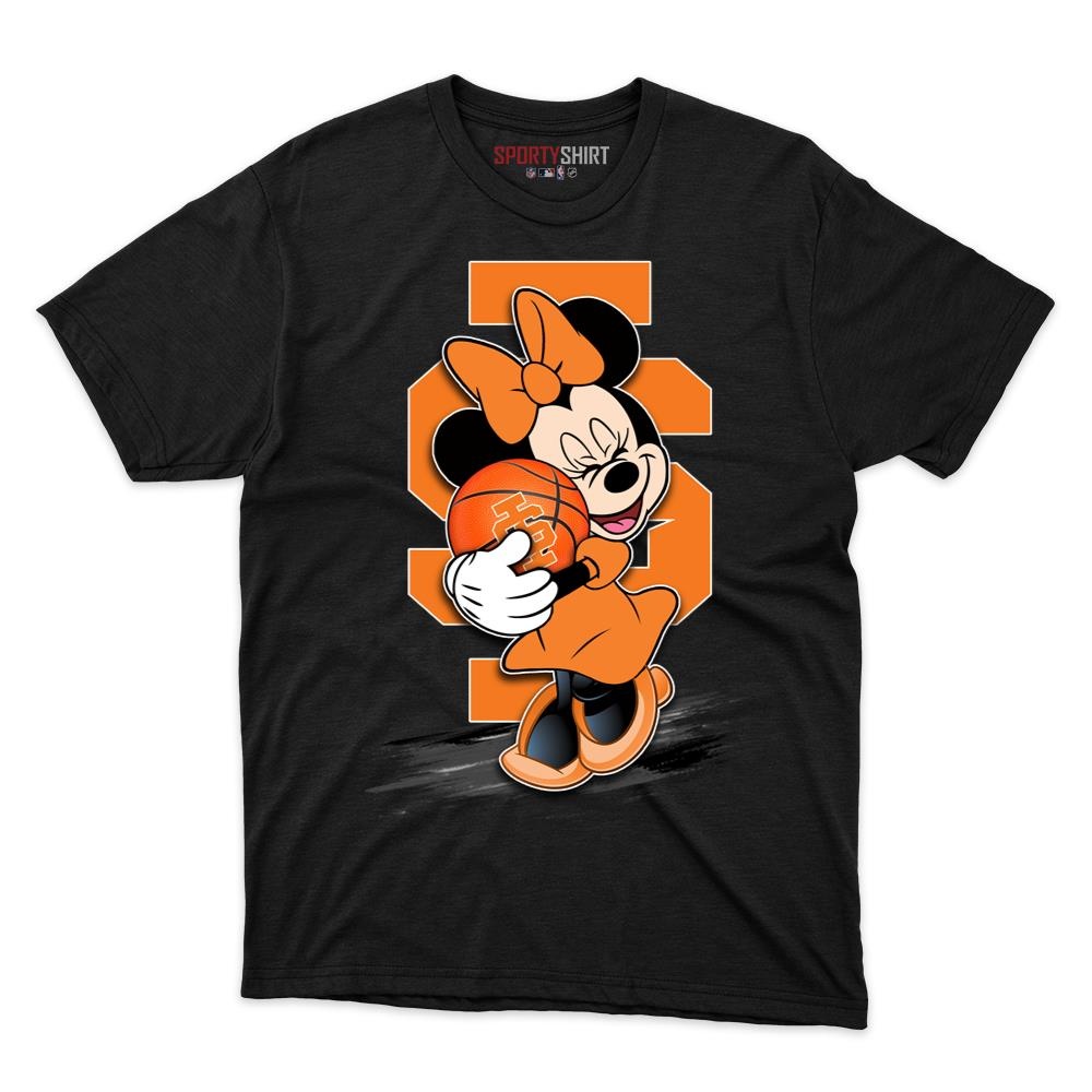 The Idaho State Bengals Minnie Mouse Ball T-shirt blends playful charm with team pride. Featuring Minnie Mouse alongside the Bengals logo, this tee offers a cute and sporty design. Perfect for fans who want to showcase their love for basketball in style.