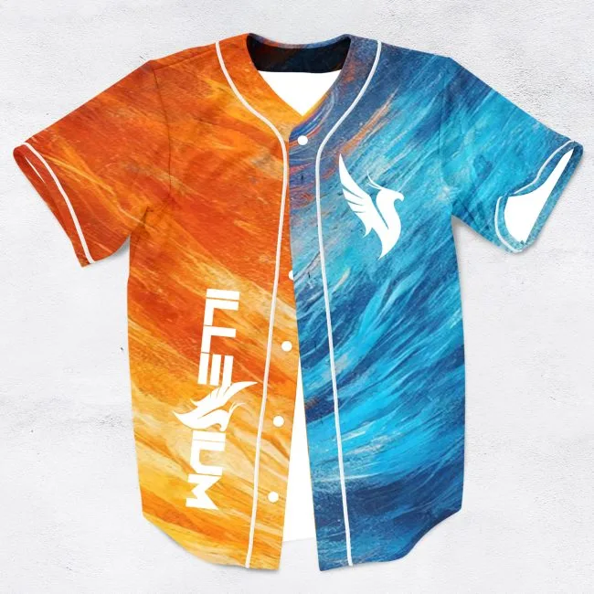 Illenium Phoenix orange and blue split rave baseball jersey for edm festivals