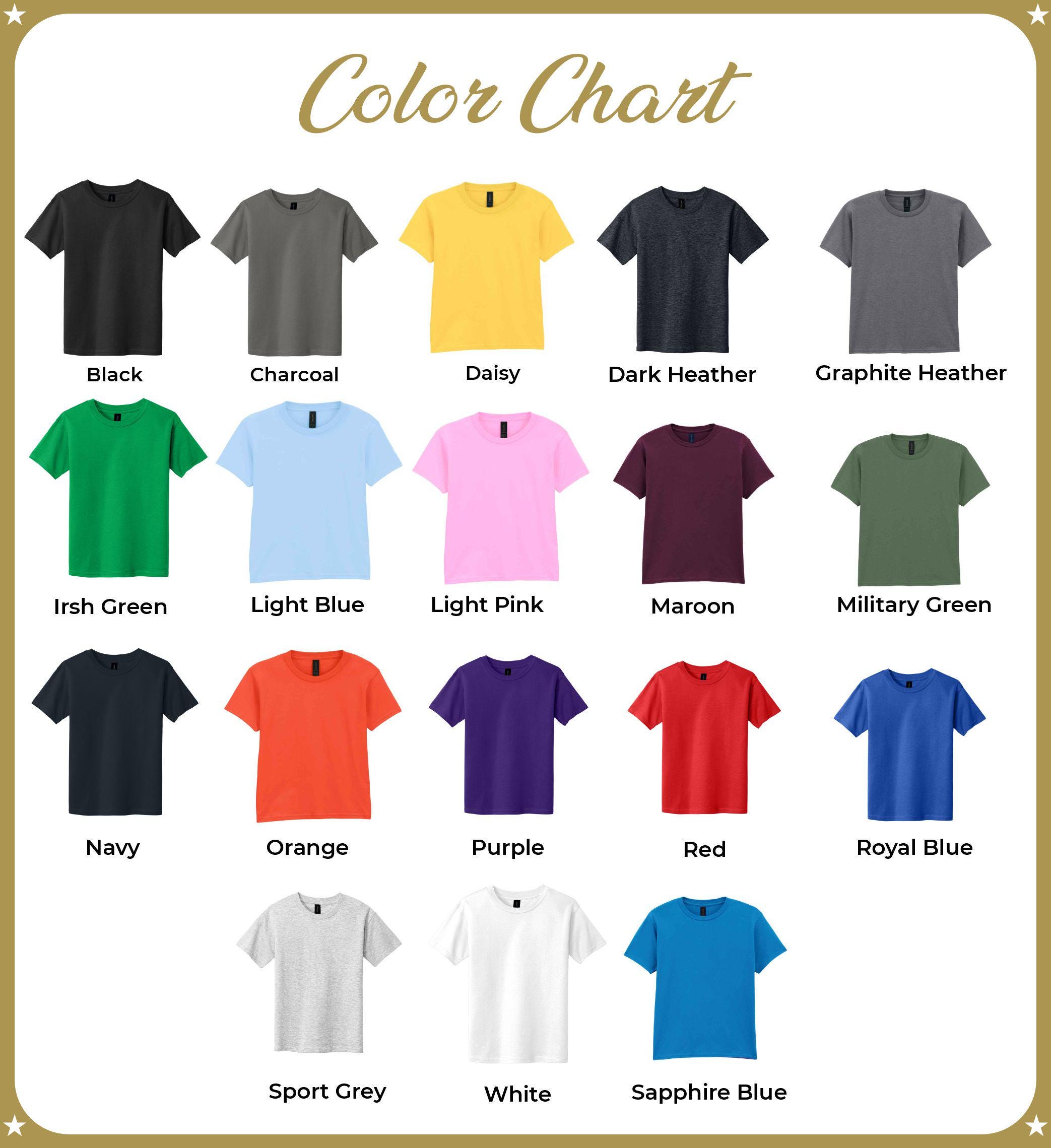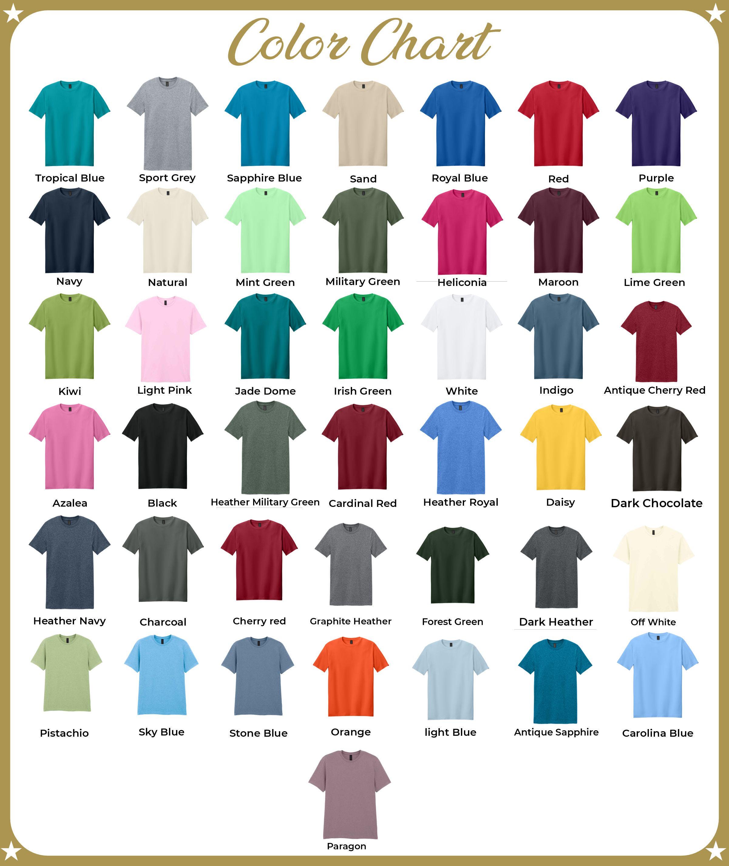 Antique Cherry Red, Black, Carolina Blue, Charcoal, Dark Chocolate, Dark Heather, Forest Green, Graphite Heather, Heliconia, Irish Green, Light Blue, Light Pink, Maroon, Military Green, Navy, Orange, Purple, Red, Royal Blue, Sand, Sapphire Blue, White, Sport Grey, Azalea, Daisy, Heather Navy