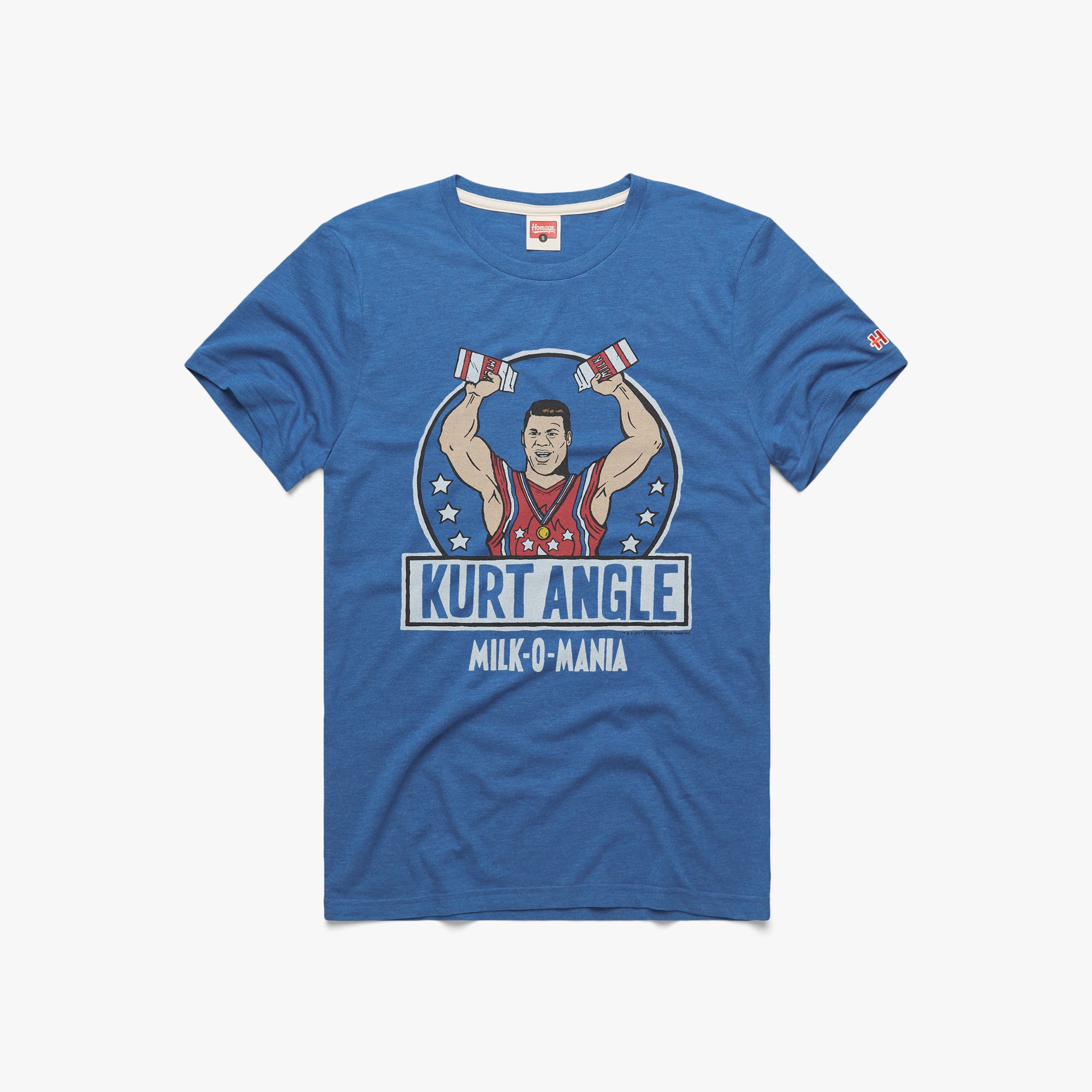 Milk-O-Mania! Rep the WWE’s most famous dairy-related incident with a super-soft look for the time Kurt Angle drove a milk truck up to the ring and sprayed down Stone Cold Steve Austin and the Alliance on Monday Night Raw. Got milk?