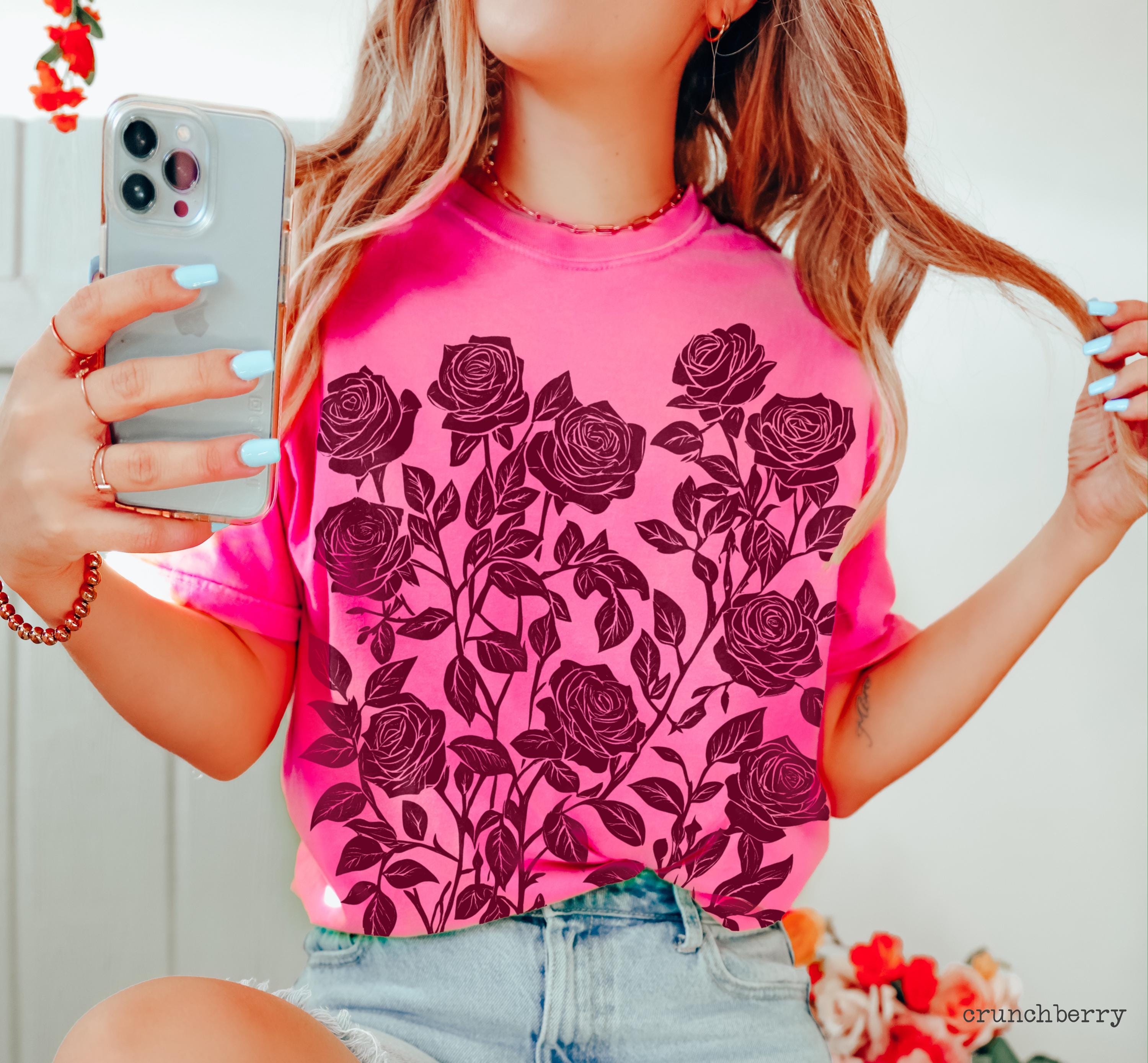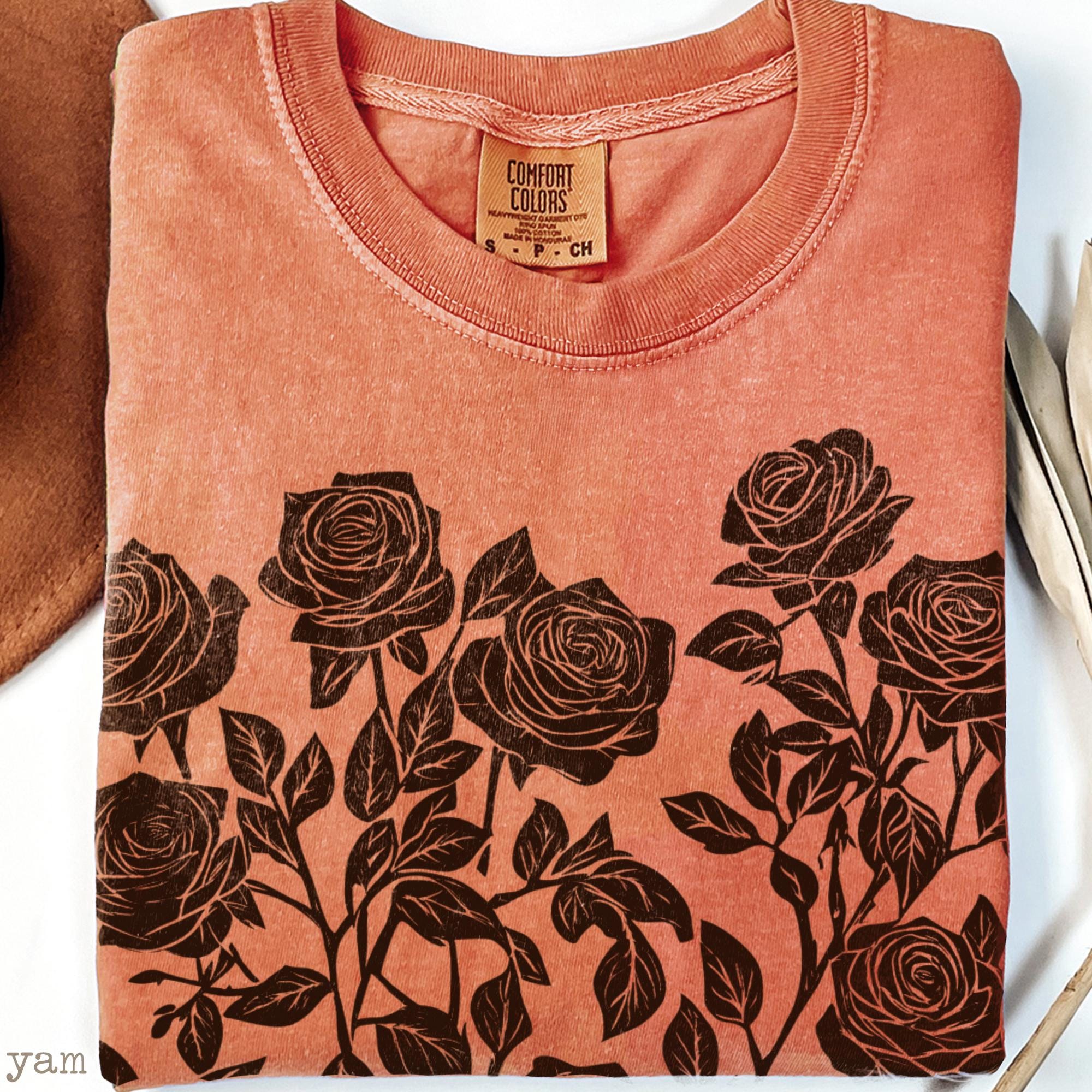 Linocut Flower Shirt Comfort Colors Roses Tee