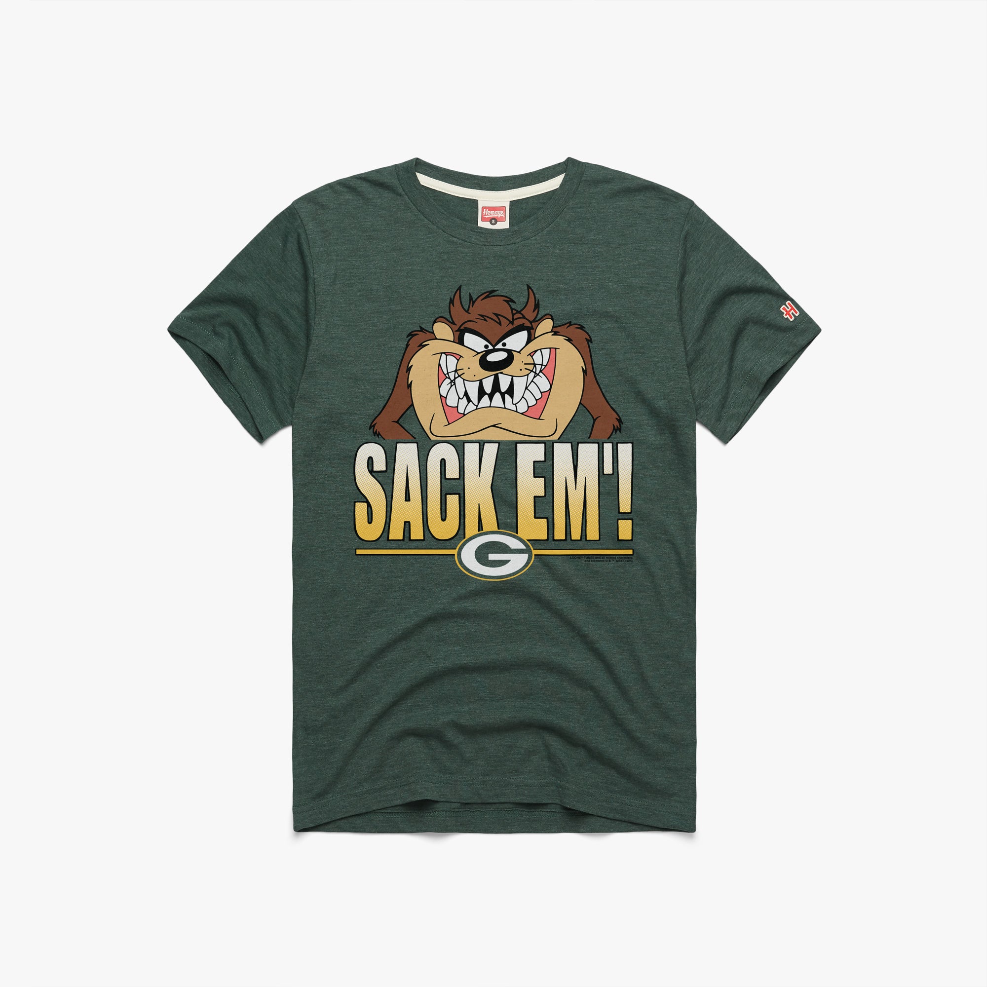 Sack ‘em, Taz! Bring down the opposition and get a little Looney Tunes with our exclusive Taz x Green Bay Packers mashup. Pay homage.