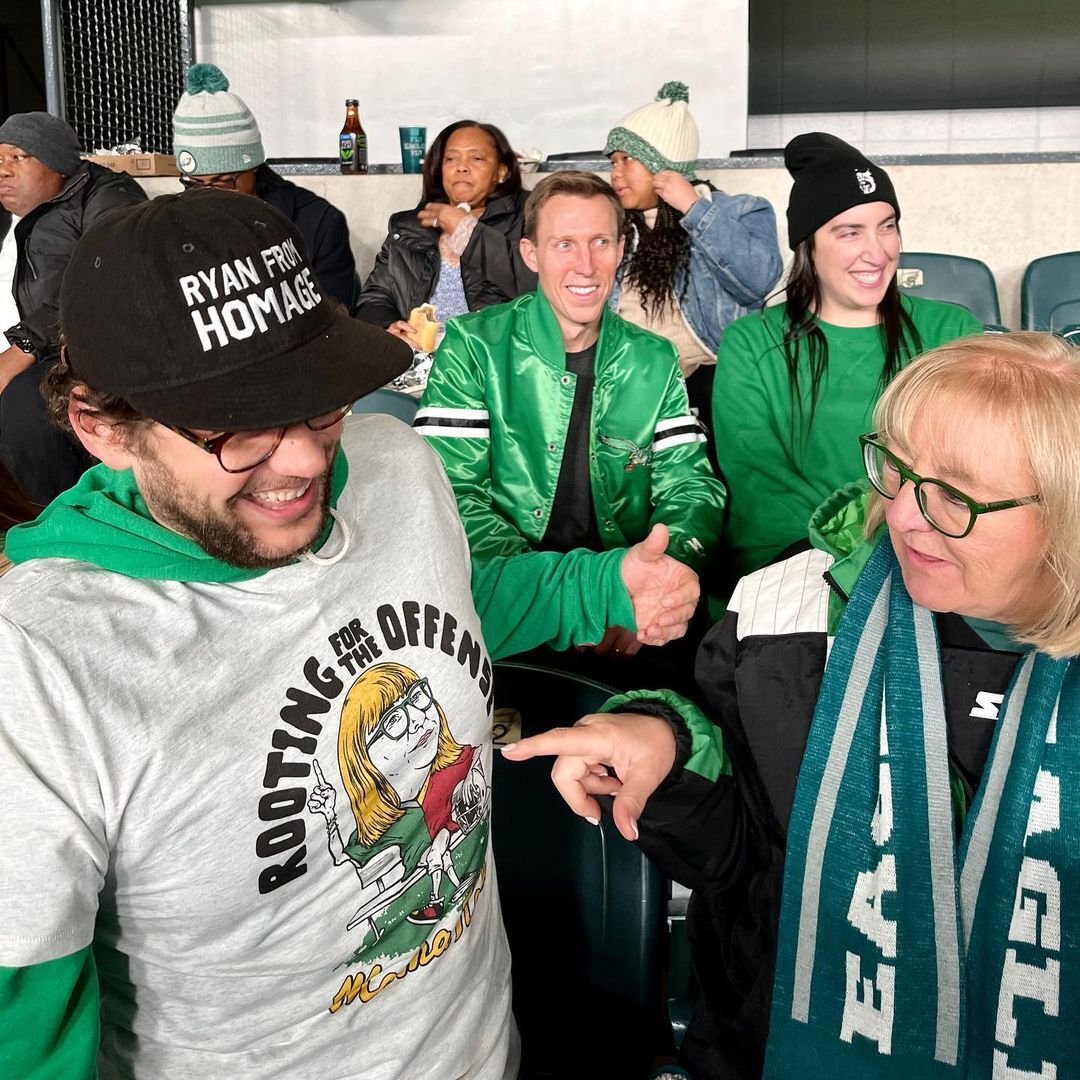 This tribute tee celebrates the ultimate football mom and her iconic, heartfelt way of supporting her sons during the NFL season. Whether you’re repping Philly green or Kansas City red, show the world you’re Team Kelce—all offense, all love.