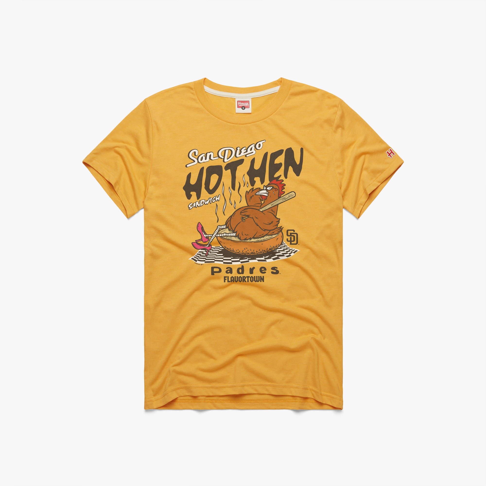 Mmmm, Hot Hen sandwich! Take a rockin’ road trip to MLB x Flavortown, our exclusive collab with the one and only Guy Fieri. Rep your San Diego Padres and chicken on a bun with this super-soft tee. Pay homage.