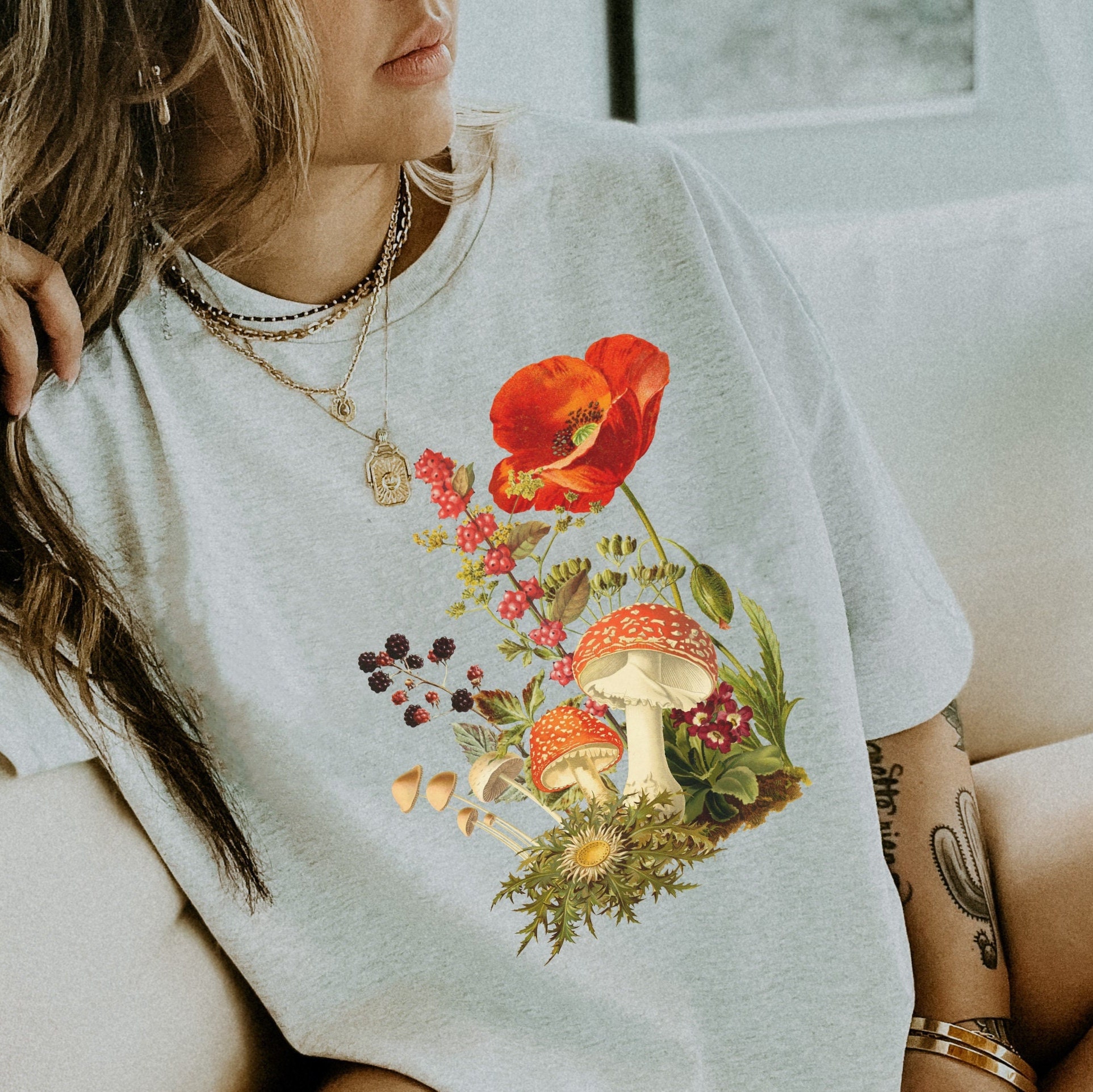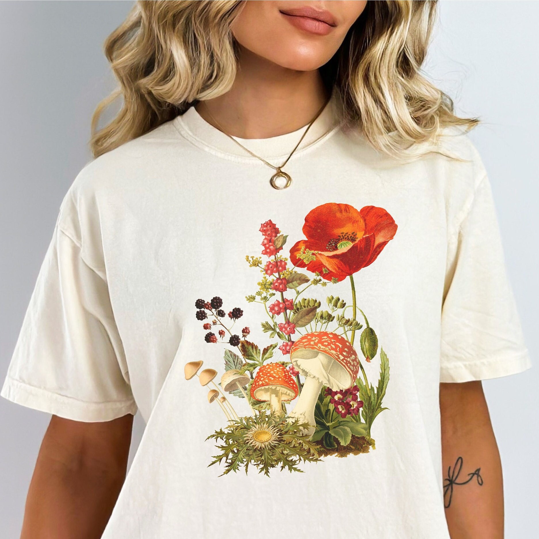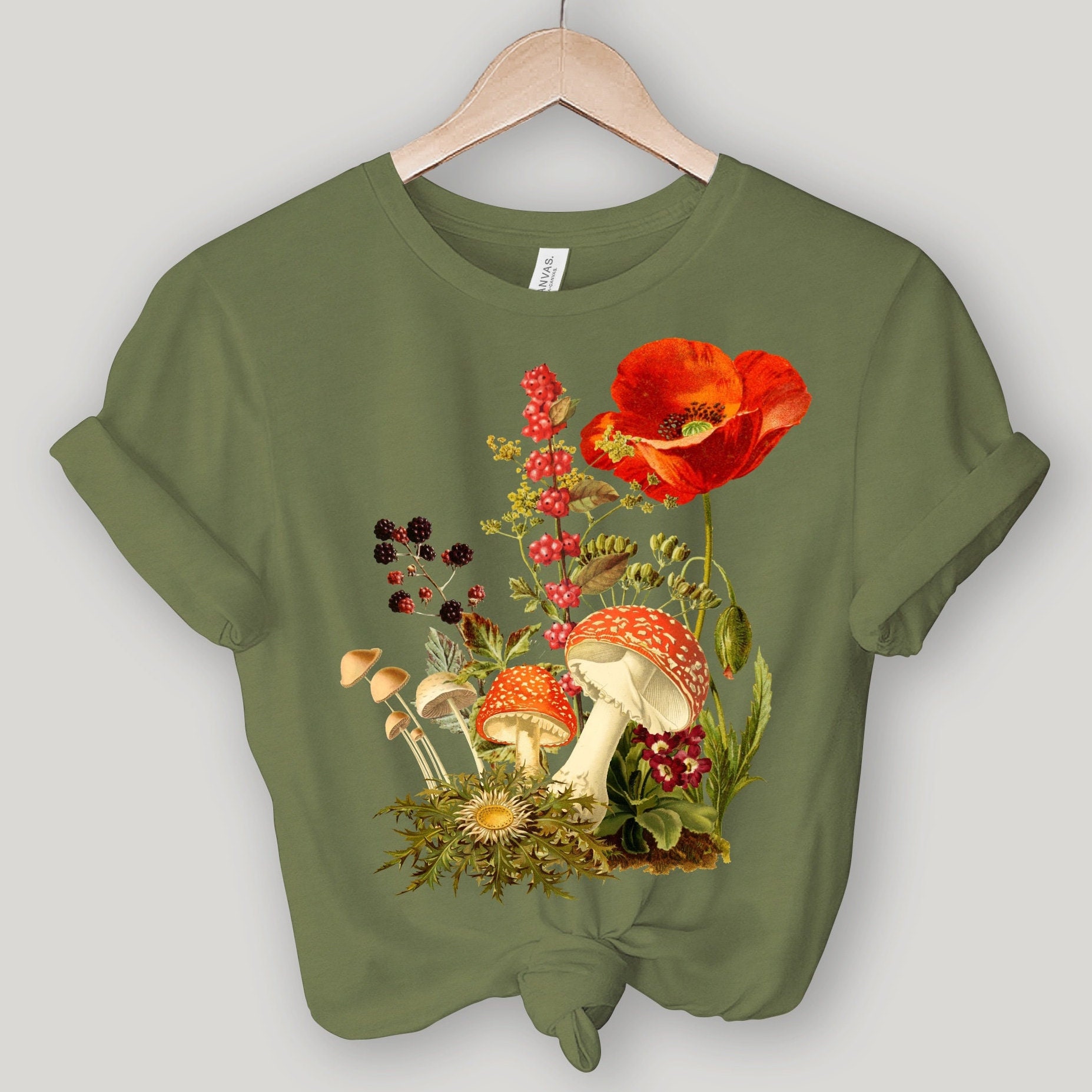 Mushroom Wildflower Cottagecore Shirt Botanical Tee