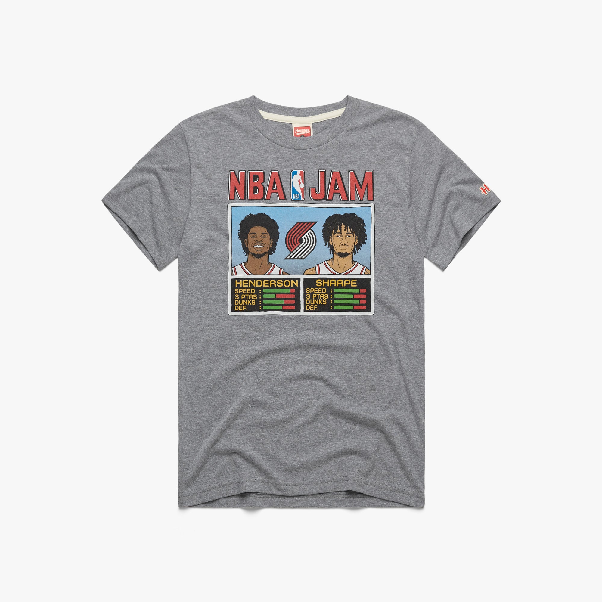 Boomshakalaka! Henderson and Sharpe are here to ball in our Portland Trail Blazers NBA Jam tee. Rep this dream duo with a throwback from your arcade dreams, and pay homage. They’re on fire!