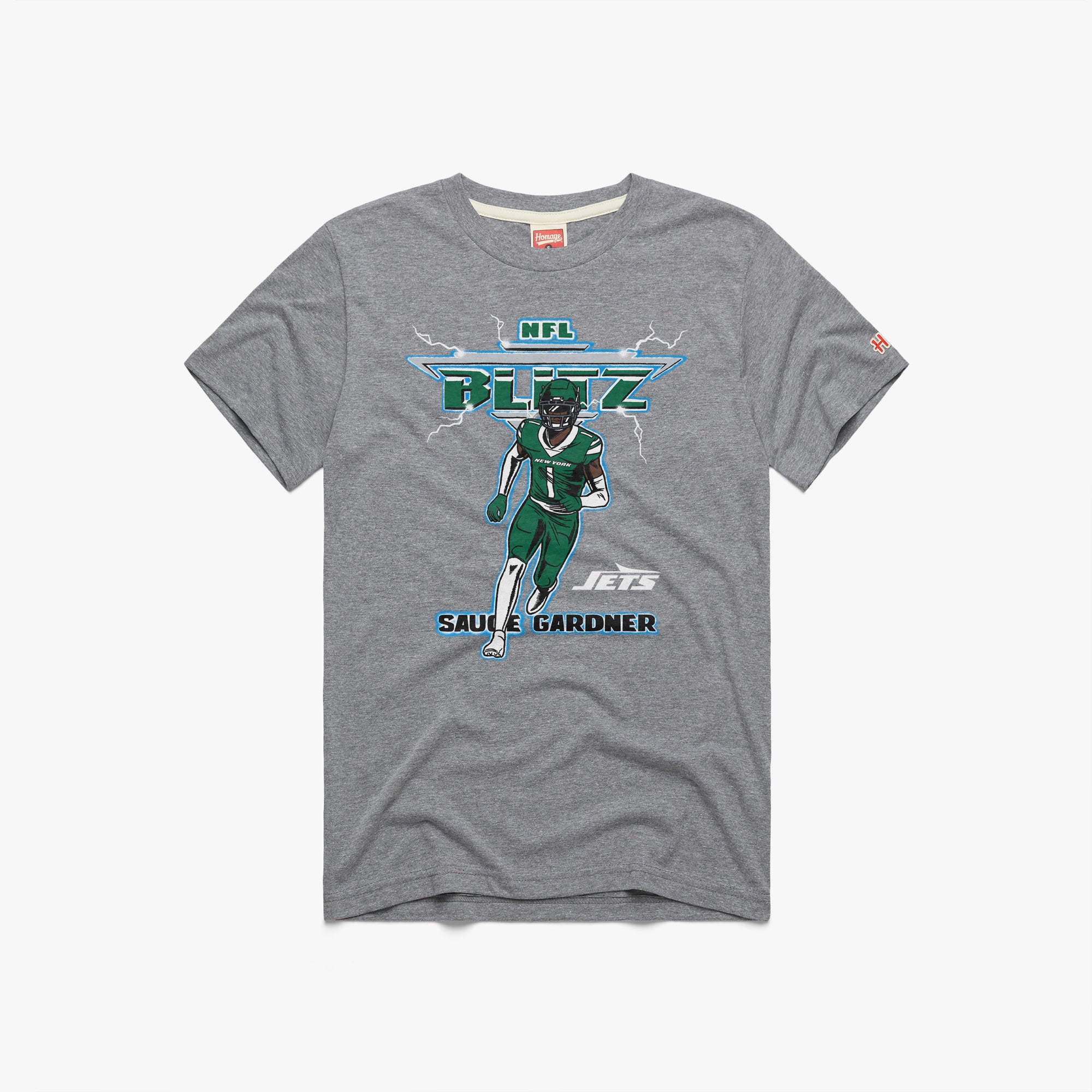 Out of control! Jets superstar Sauce Gardner gets the iconic arcade treatment in our newest NFL Blitz look, and the results are completely necessary. Because this collection IS called for, and a lot of fun to watch.