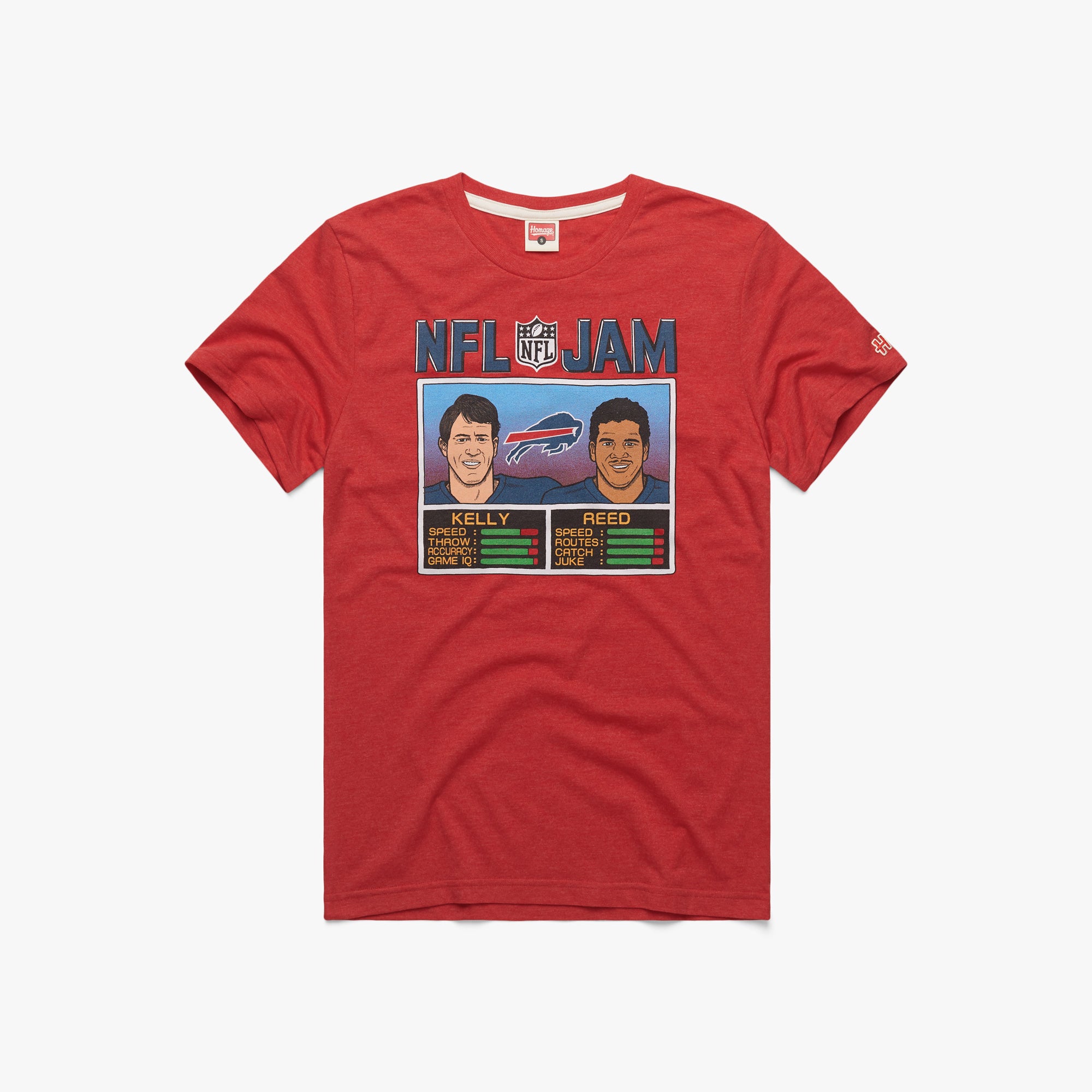 Boomshakalaka! NFL Jam is here! Rep one of your favorite retired Buffalo Bills duos with a super-soft tee for Jim Kelly and Andre Reed, and let’s get ready for some football. They’re on fire!