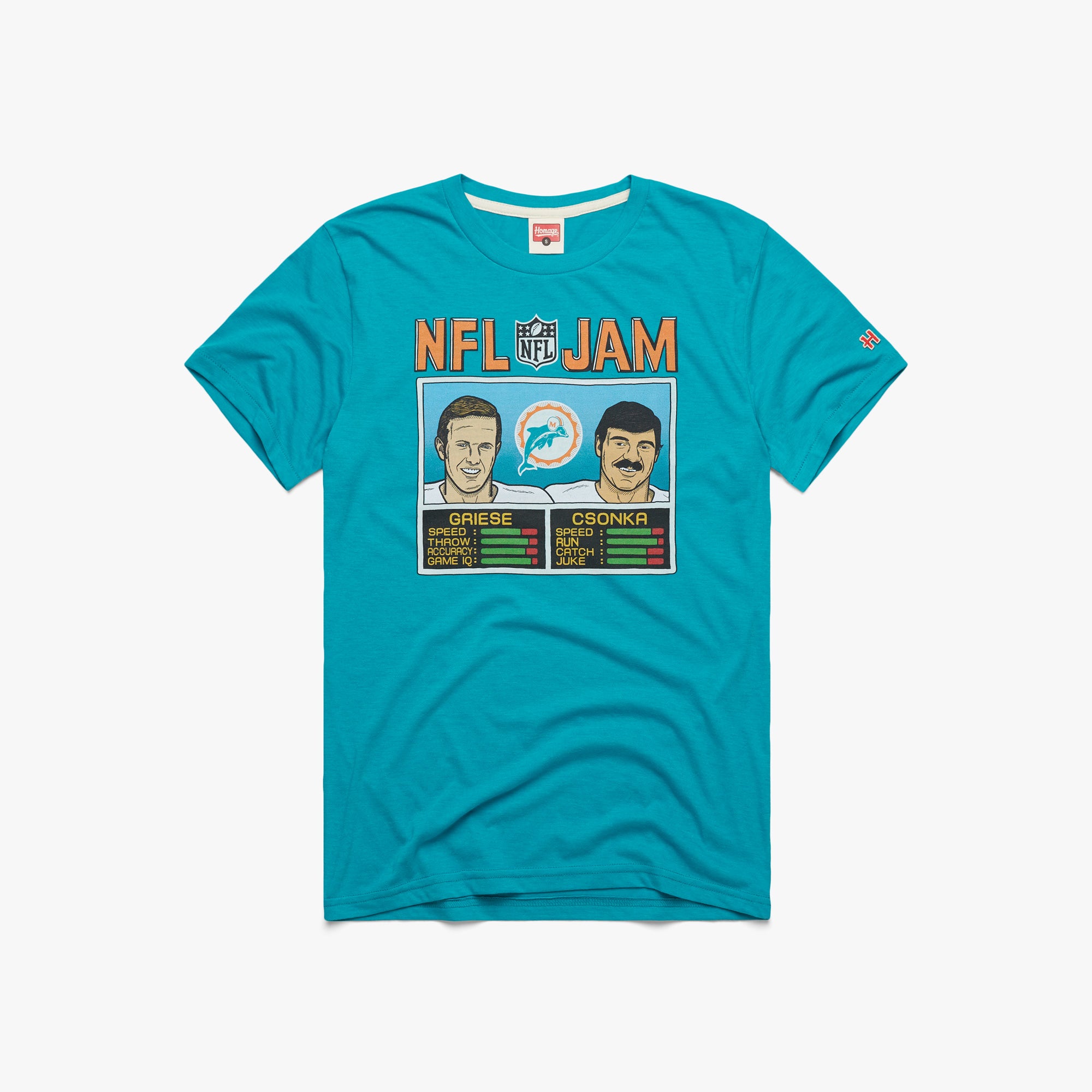 Boomshakalaka! Bob Griese and Larry Csonka helped the Dolphins dominate the league in the early 1970s, including back-to-back Super Bowl wins, and this NFL Jam look reps a Miami golden era in style. They’re on fire!