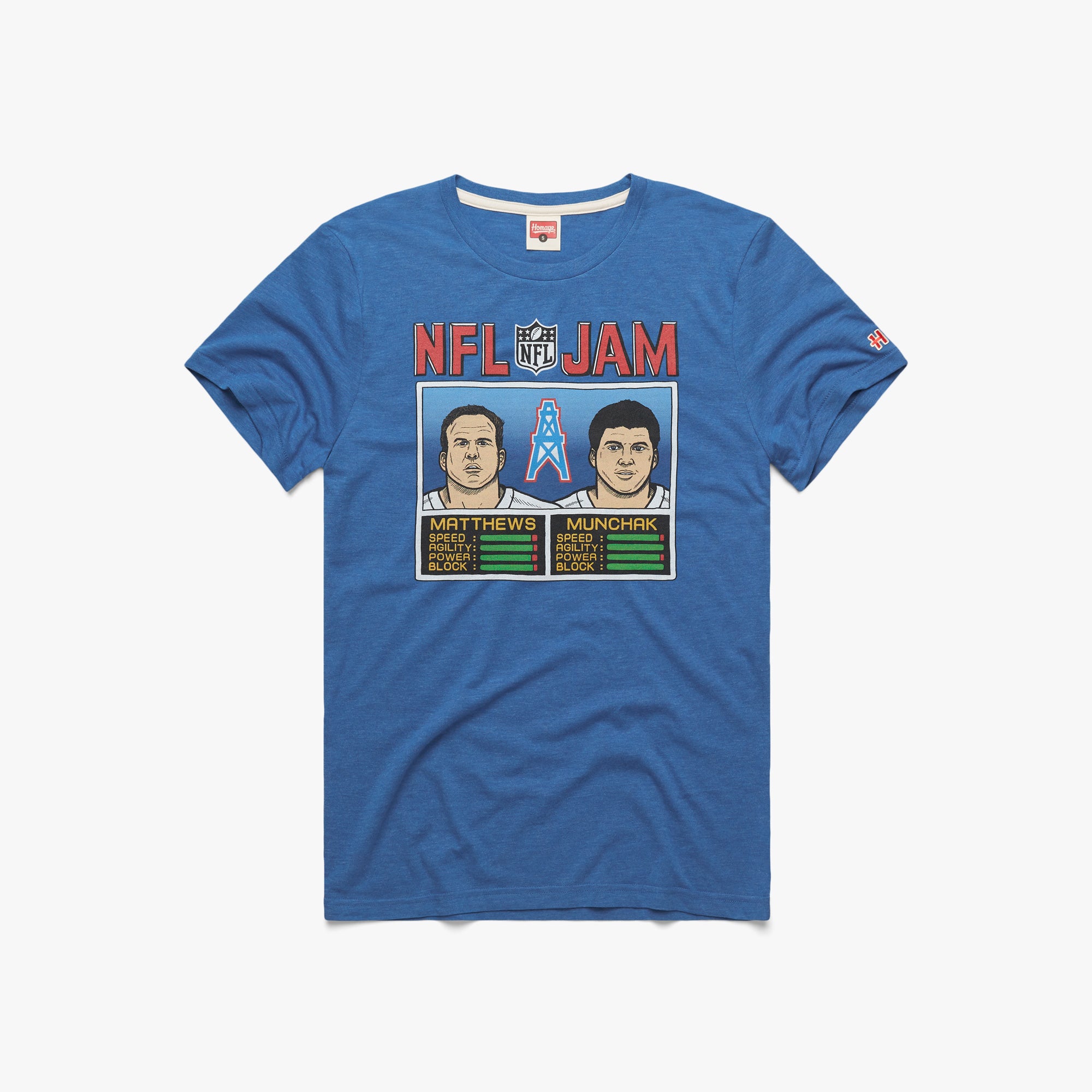 Boomshakalaka! NFL Jam is here! Rep one of your favorite retired Houston Oilers duos with a super-soft tee for Bruce Matthews and Mike Munchak, and let’s get ready for some football. They’re on fire!