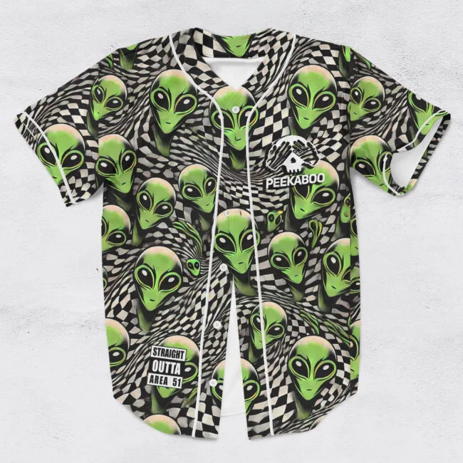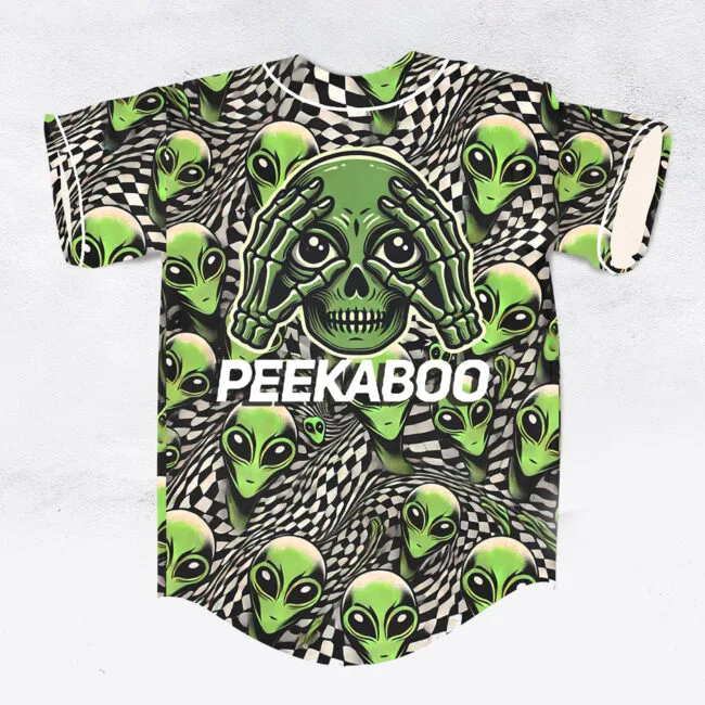 Peekaboo alien straight outta area 51 rave baseball jersey for EDM festivals