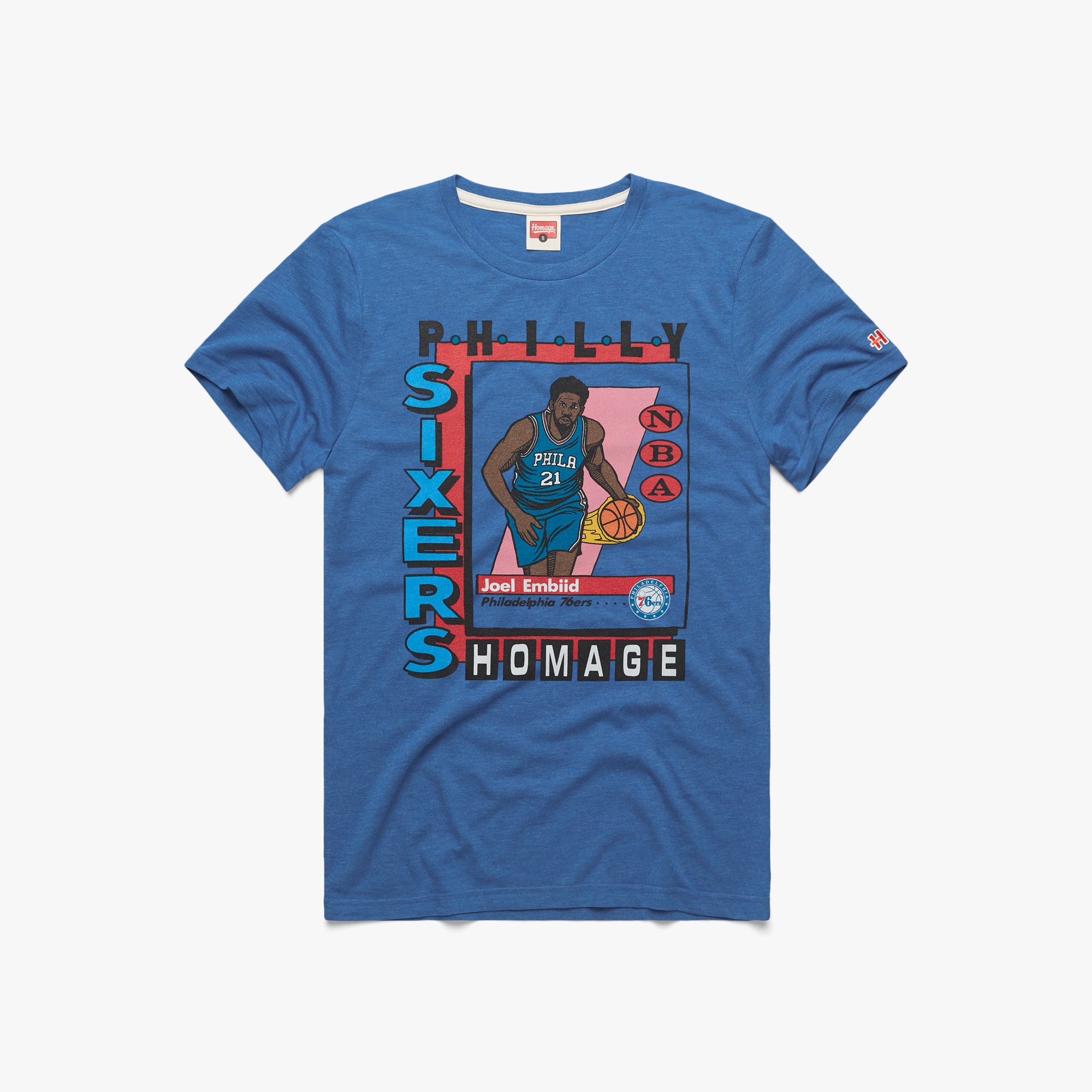 Fresh out the ‘box, it’s a super-soft Joel Embiid look with classic trading card vibes. The sky’s the limit with this Philadelphia 76ers tee that showcases hoopin’ like the art form it is. Pay homage.
