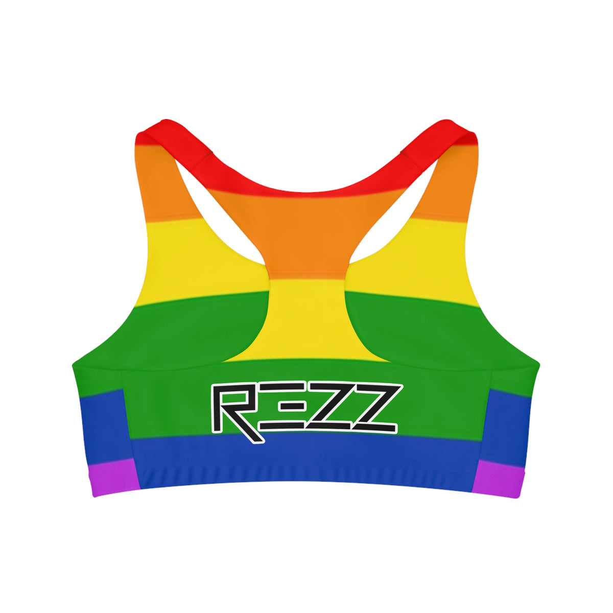 Pride-Inspired Design: Adorned with a vibrant, pride-themed pattern, this sports bra is a powerful symbol of love, equality, and acceptance. Its eye-catching design is sure to make a statement wherever you go.
