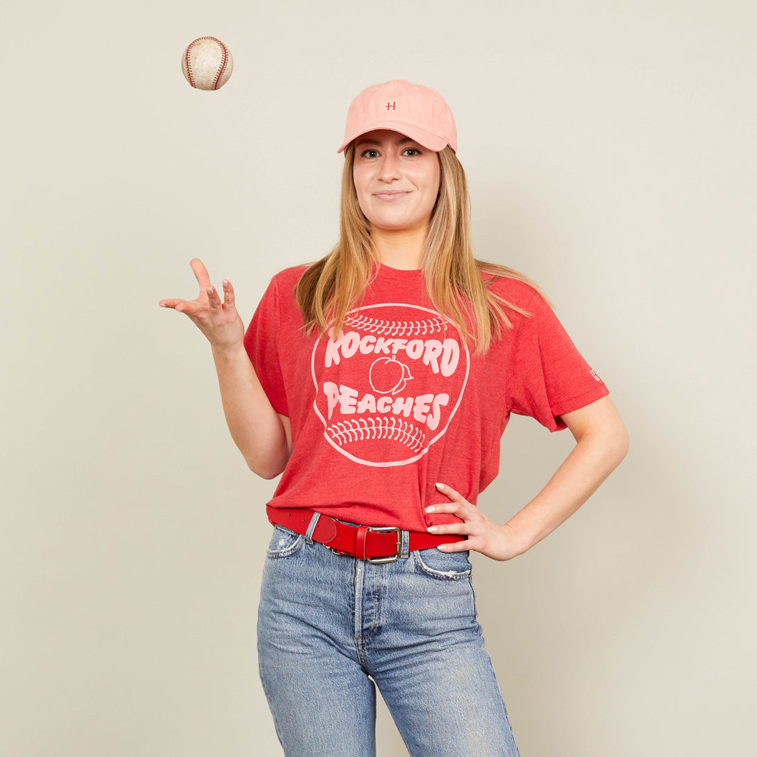Batter up! Rep the All-American Girls Professional Baseball League, founded in 1943, was the first women’s professional sports league in the United States, and we’re repping the Rockford Peaches and that pioneering group of women with this super-soft tee. Pay homage.