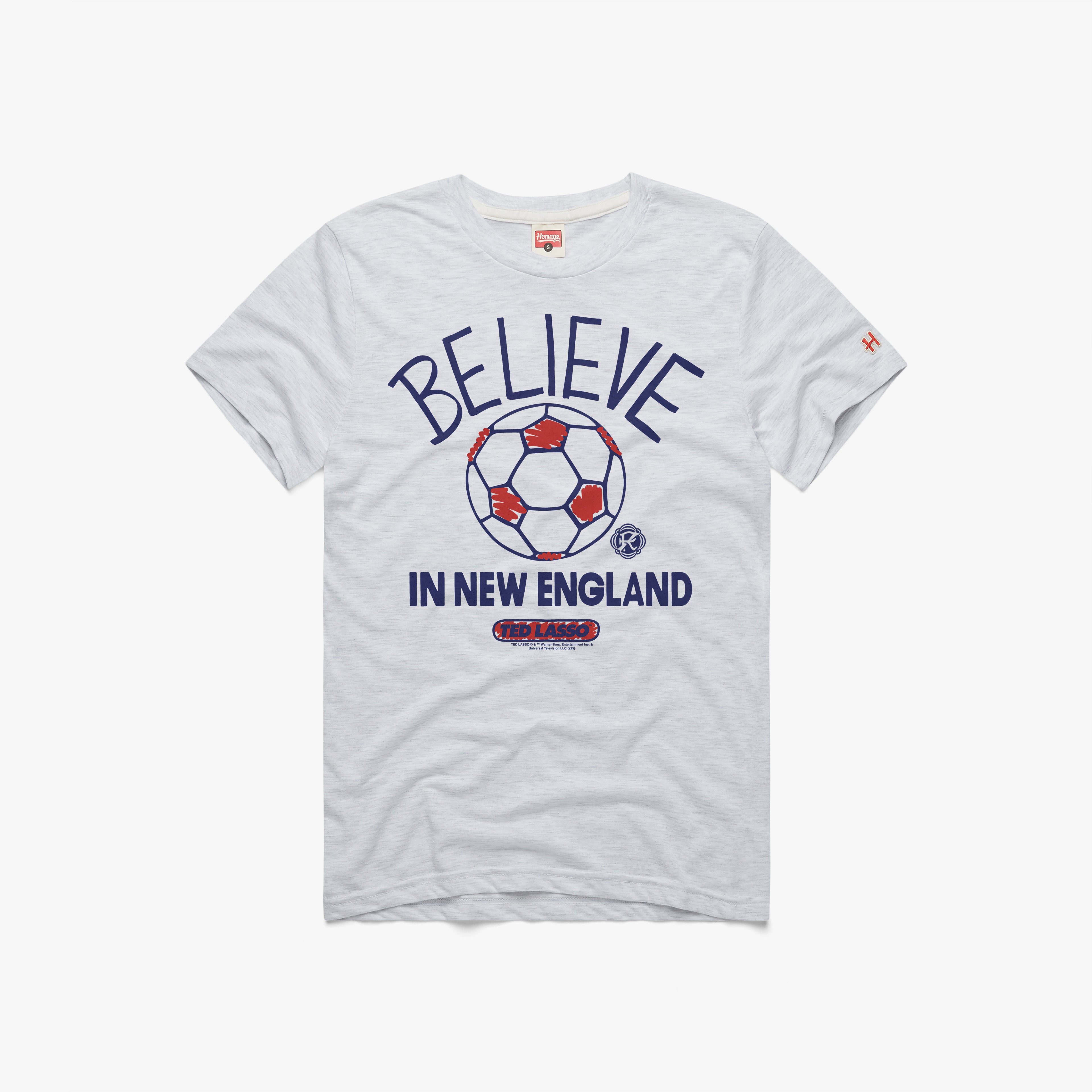 Believe in New England! Rep your futbol club with an exclusive Ted Lasso mashup for your New England Revolution. Pay homage.