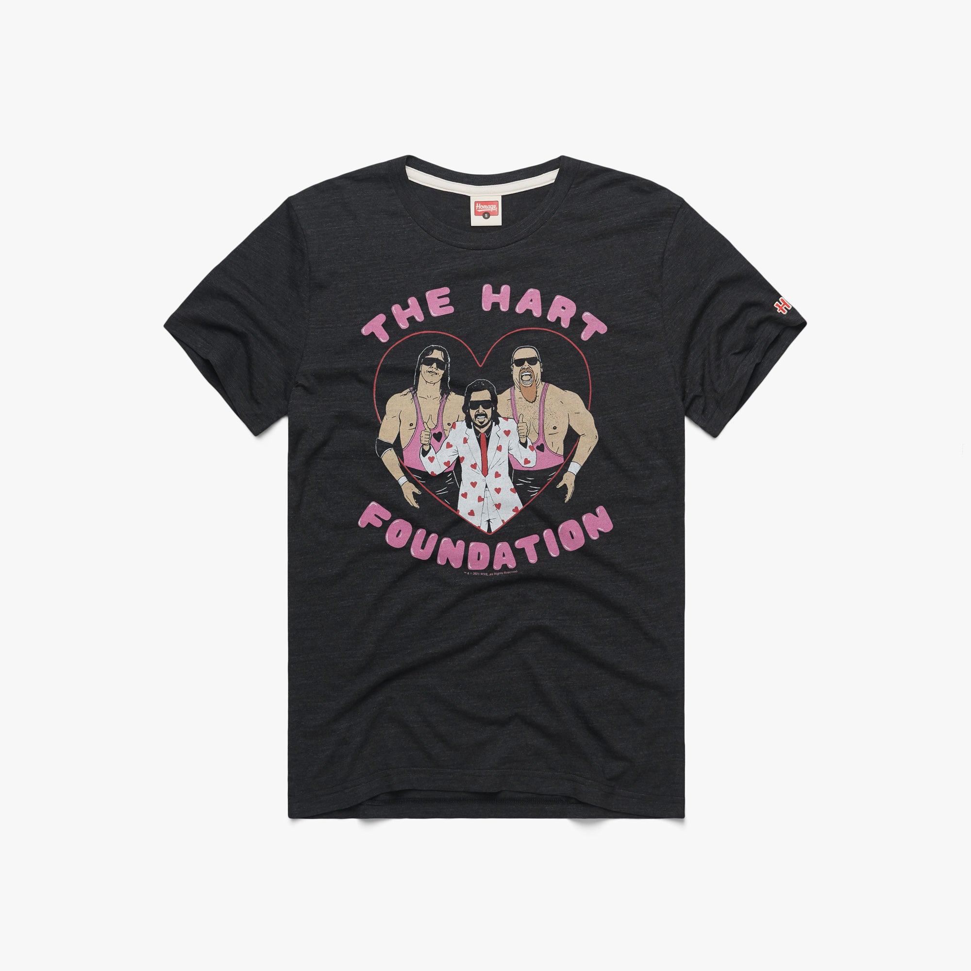 Comprised of brothers-in-law Bret “The Hitman” Hart and Jim “The Anvil” Neidhart, alongside “The Mouth of the South” Jimmy Hart, the Hart Foundation were one of the most dominant tag teams in the WWE in the 80s. The duo won the WWE Tag Team Championship twice, finishing opponents with the devastating Hart Attack double team. Pay homage to the pink and black attack.