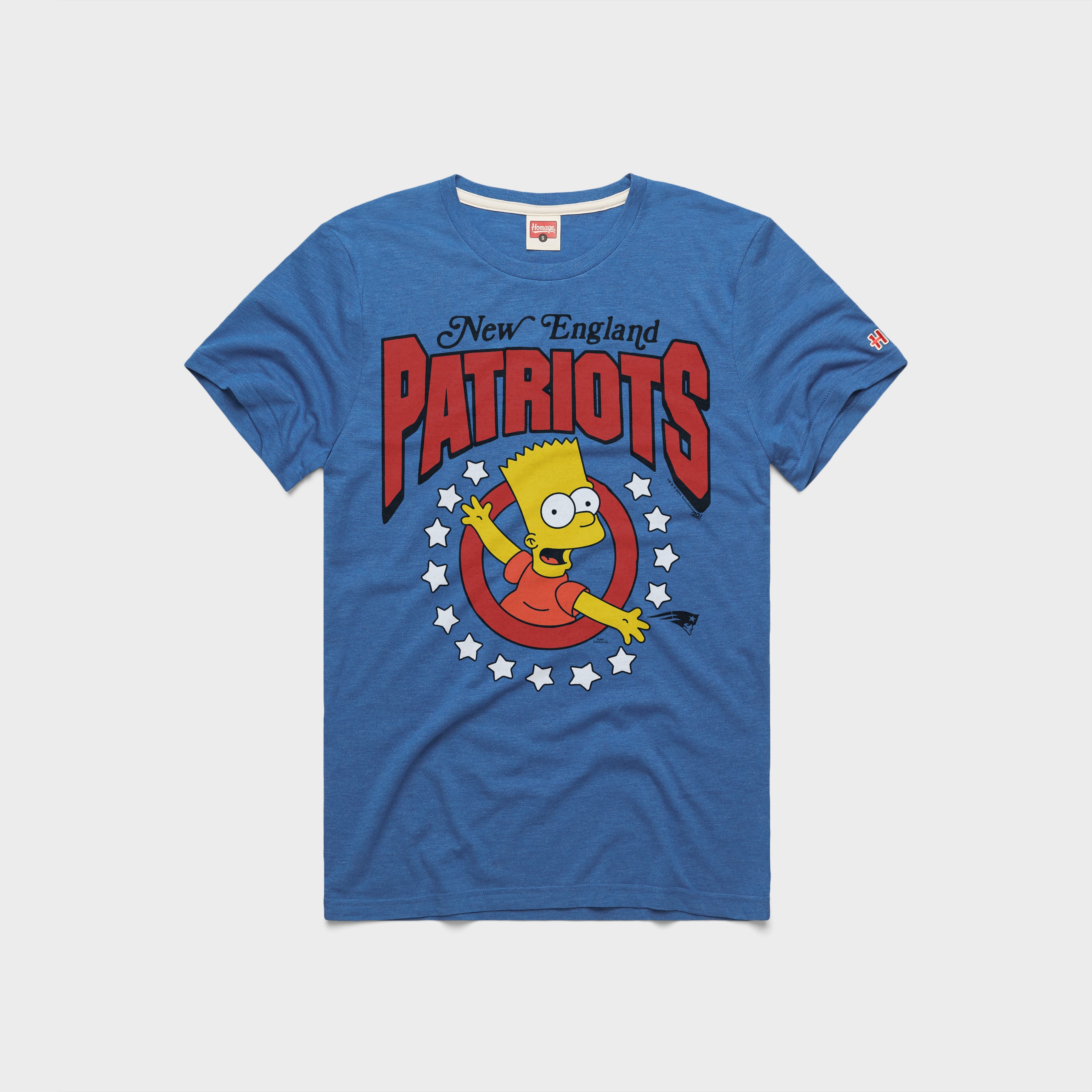 The ultimate cartoon rebel meets the ultimate football fanbase in a once_in_a_generation crossover. This time, Bart is calling the plays with a super-soft look for The Simpsons and your New England Patriots.