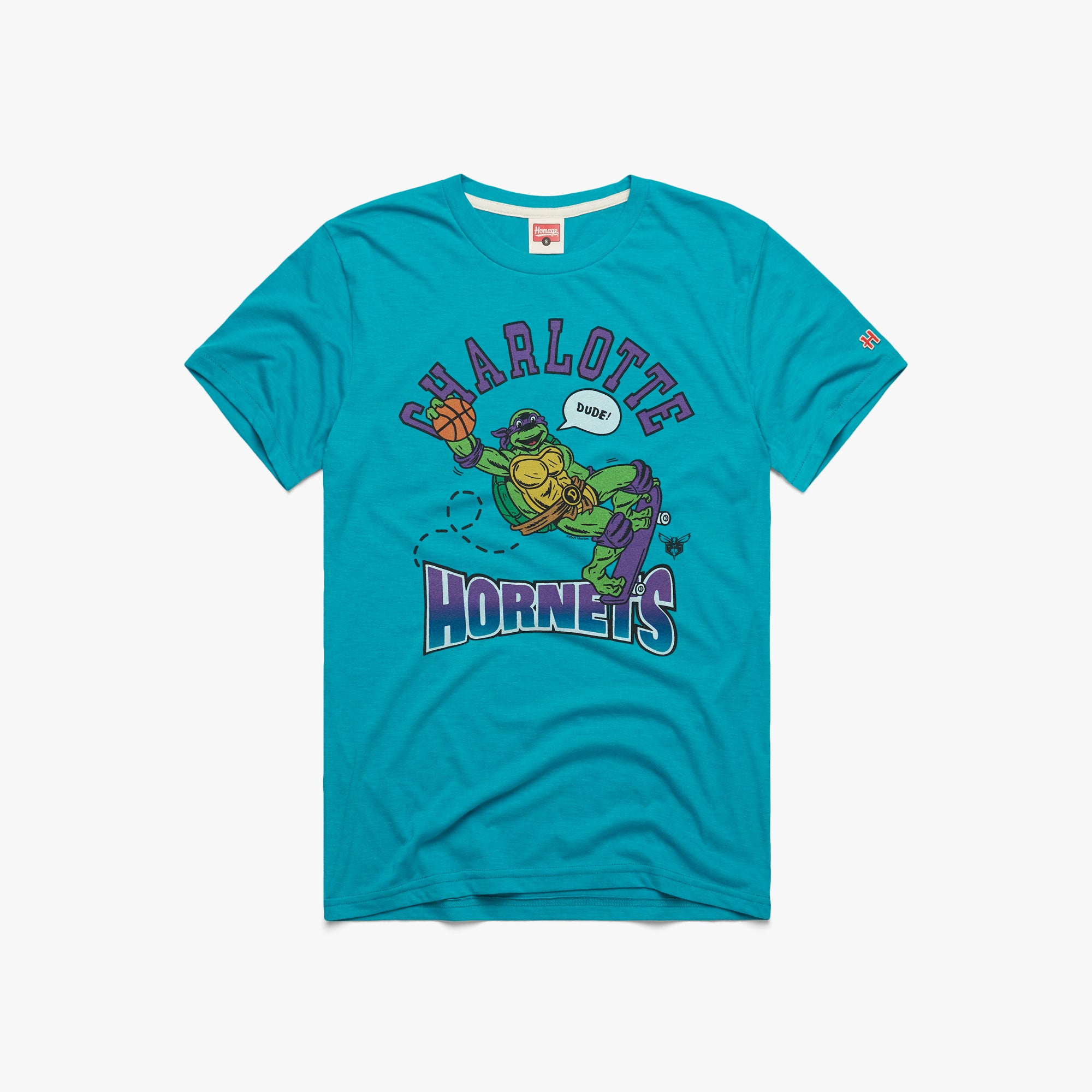 Cowabunga! An epic mashup straight from the sewers, it’s a super-soft tee for Donatello and the Charlotte Hornets. Hit the courts and keep it radical, dudes. Ballin’ turtle power.