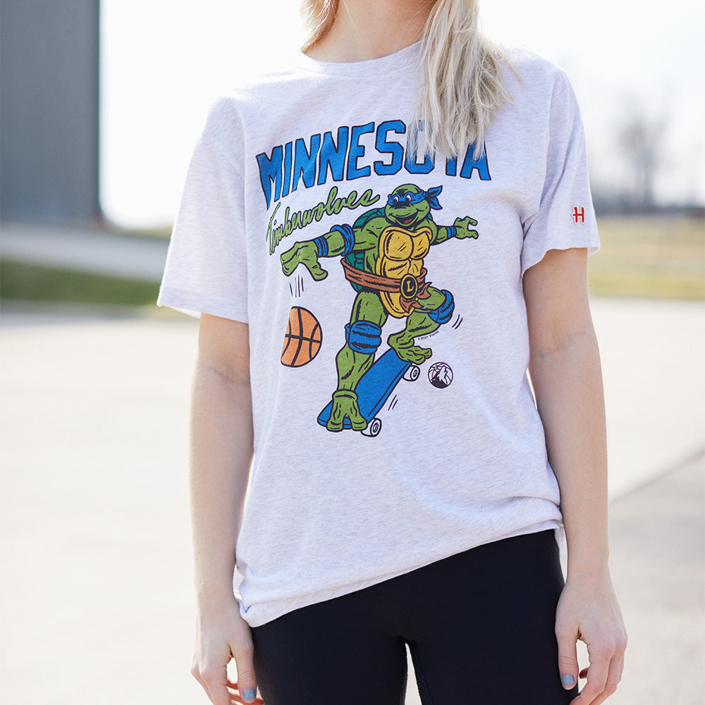Cowabunga! An epic mashup straight from the sewers, it’s a super-soft tee for Leonardo and the Minnesota Timberwolves. Hit the courts and keep it radical, dudes. Ballin’ turtle power.