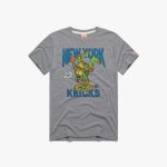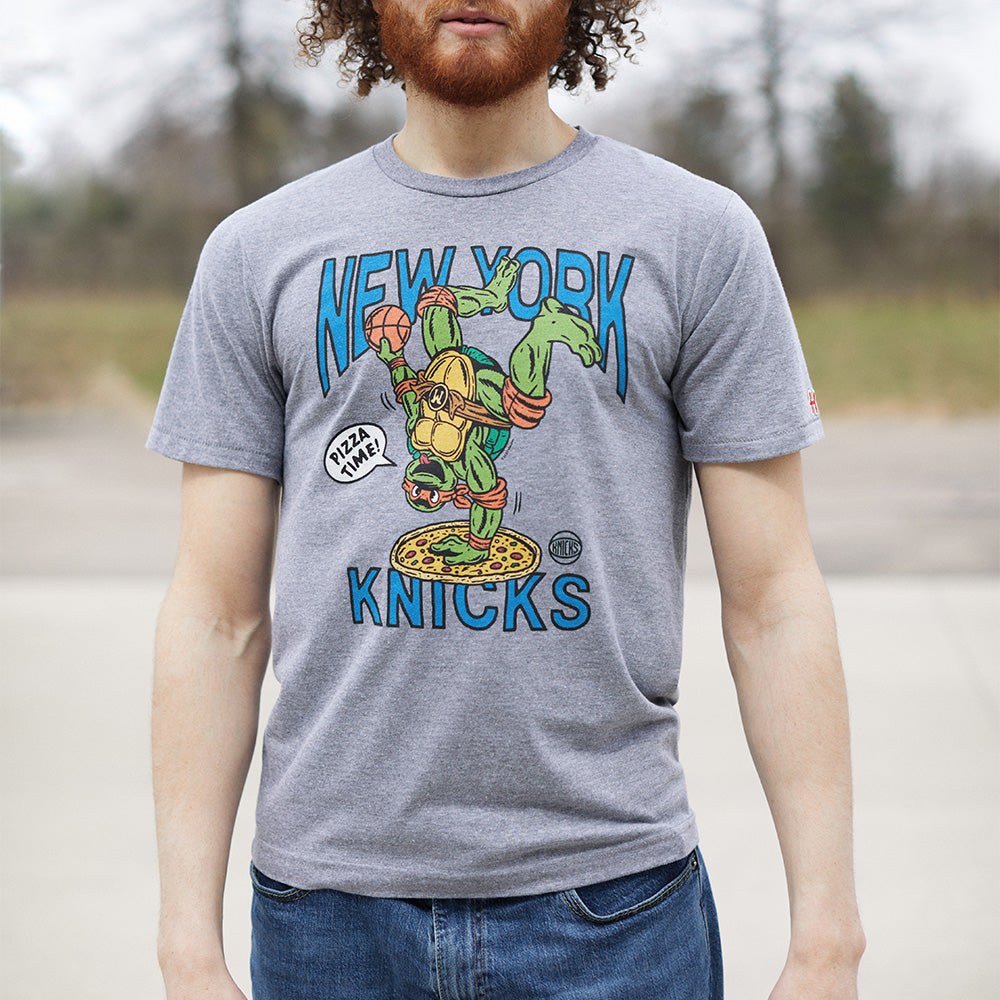Cowabunga! An epic mashup straight from the sewers, it’s a super-soft tee for Michelangelo and the New York Knicks. Hit the courts and keep it radical, dudes. Ballin’ turtle power.