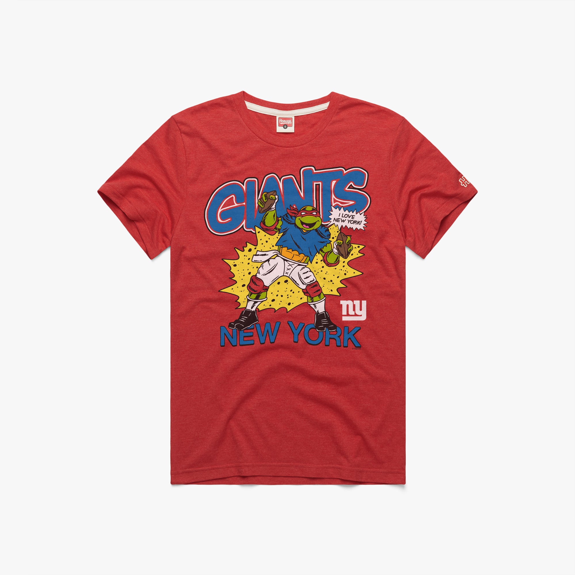 Cowabunga! The heroes in a half-shell are ready for some football with our first-ever NFL x TMNT mashup. Served up hot and fresh as pepperoni pizza, this super-soft Raphael x Giants look is here to party, dudes. Radical!