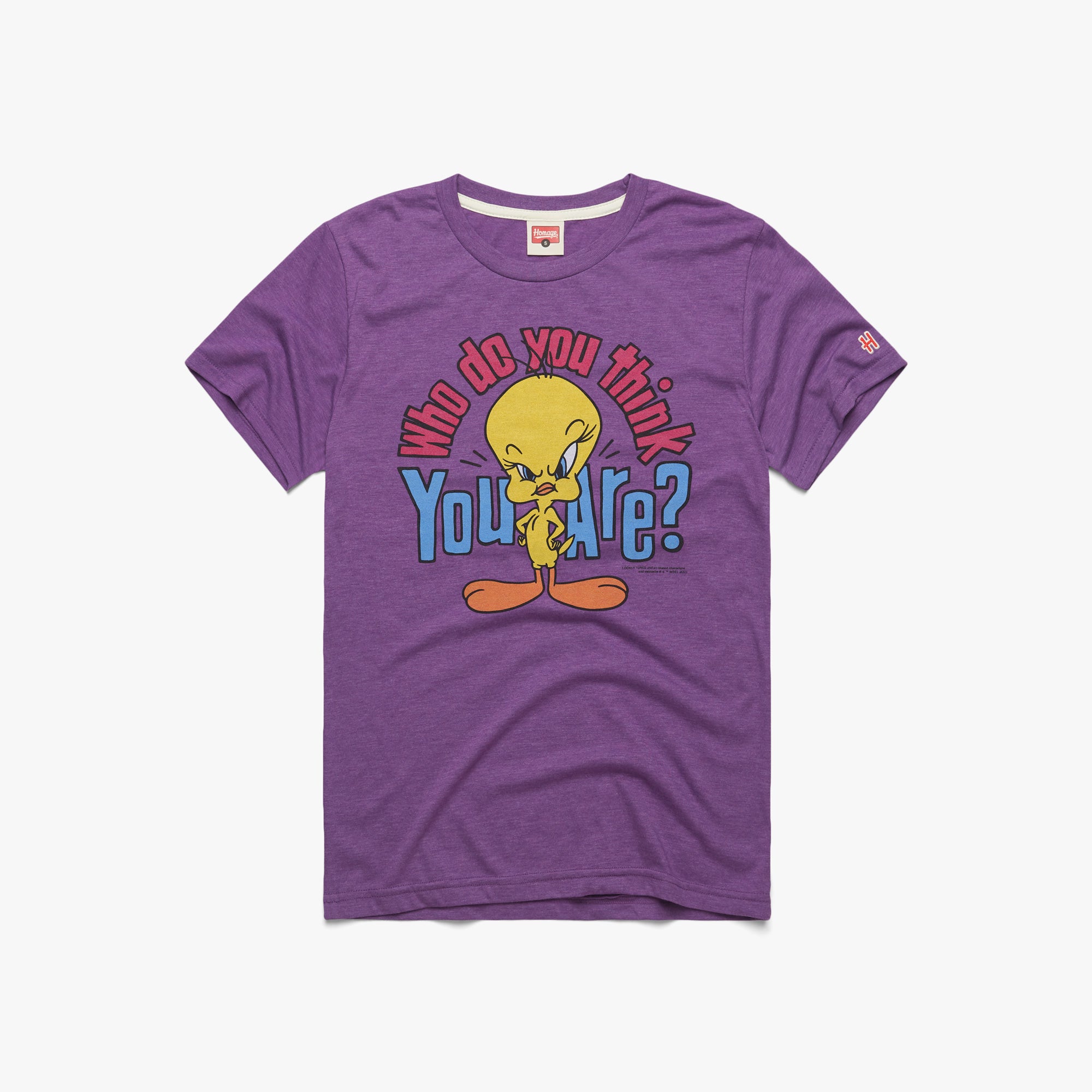 Stay away from puddy tats in style with our super-soft tee for your favorite Looney Tune. Who do you think you are? The one and only Tweety Bird. Pay homage.
