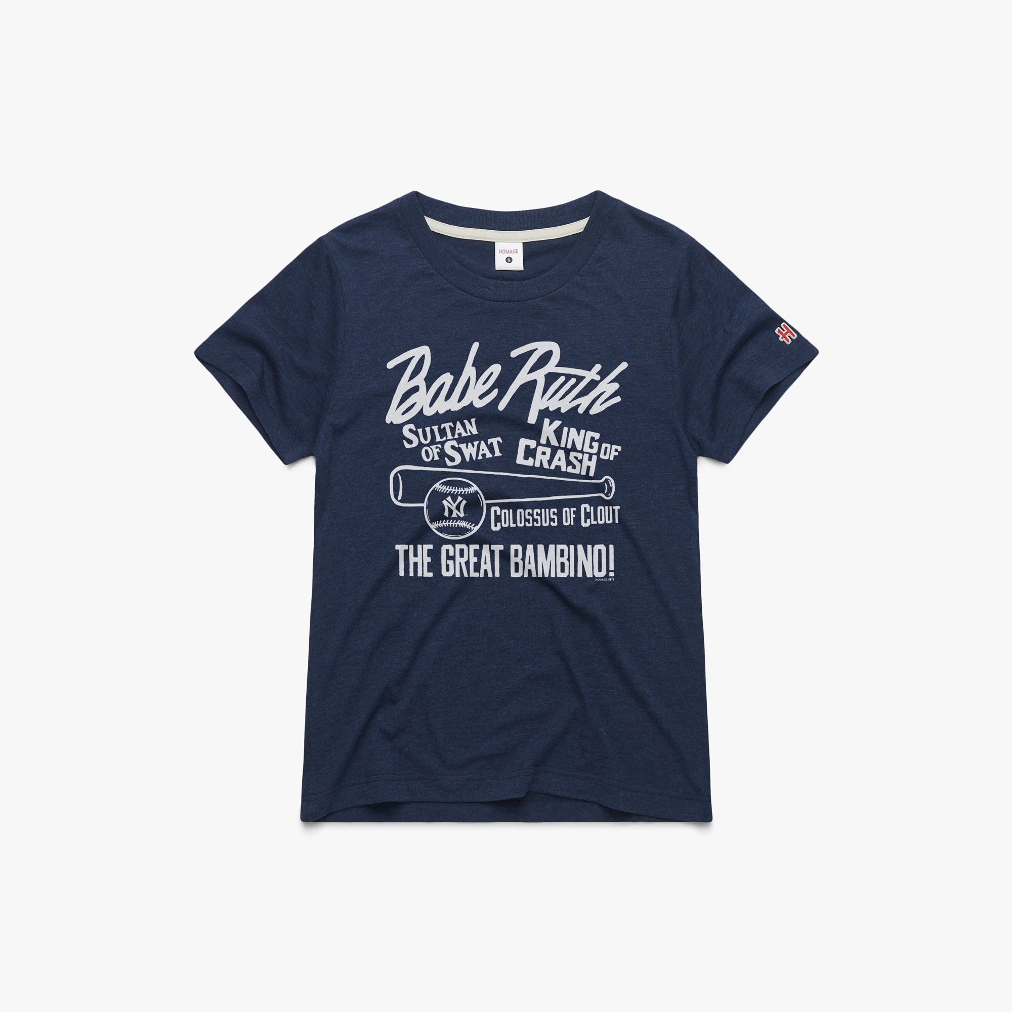 The Great Bambino. The Sultan of Swat. The Colossus of Clout. A player so great, they named him about a hundred different ways. There is simply no baseball player like Babe Ruth, and our super-soft women’s tee honors the King of Crash with just a few of his many monikers. Pay homage.