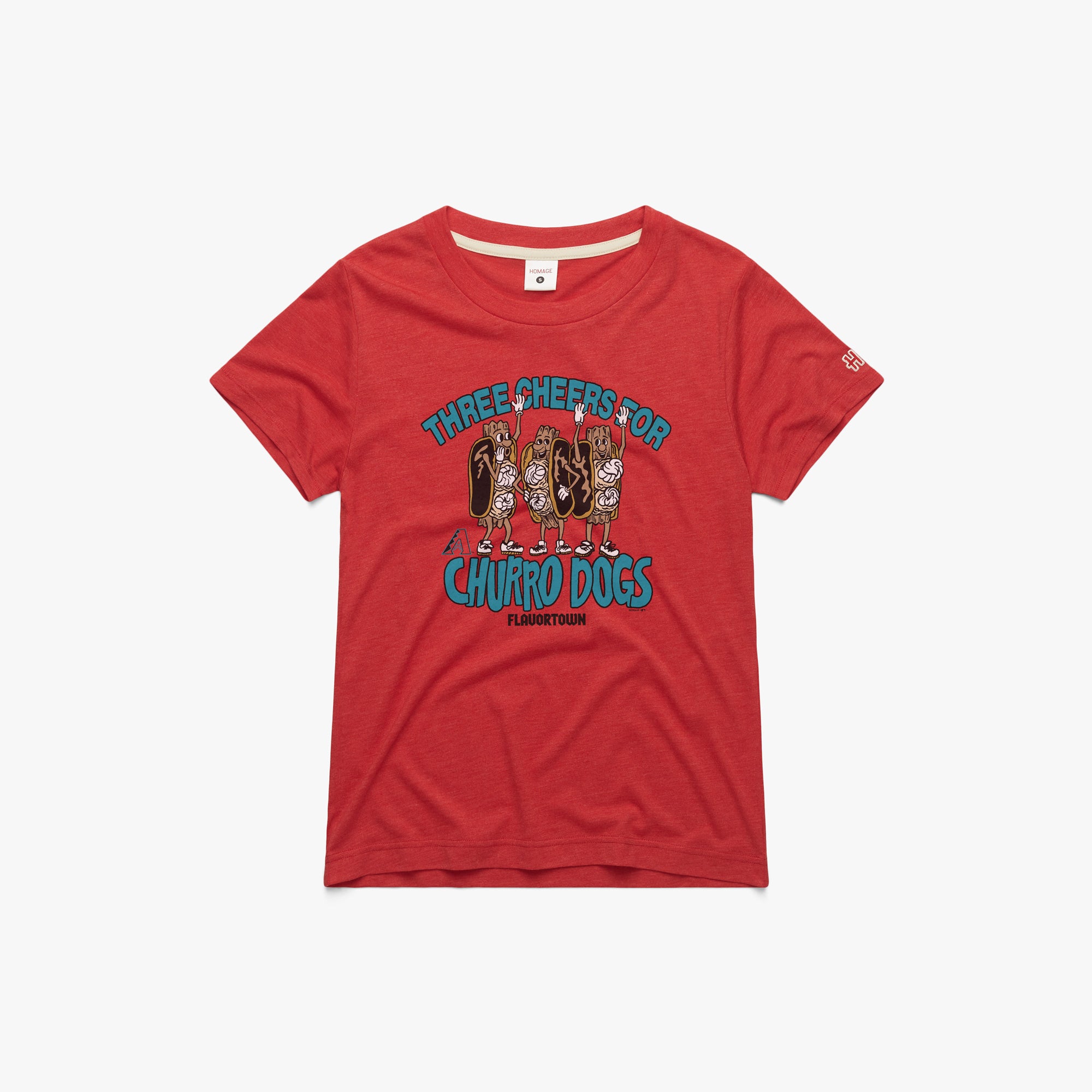 Three cheers for Churro Dogs! Take a rockin’ road trip to MLB x Flavortown, our exclusive collab with the one and only Guy Fieri. Rep your Arizona Diamondbacks and delicious hot dogs with this super-soft women’s tee. Pay homage.