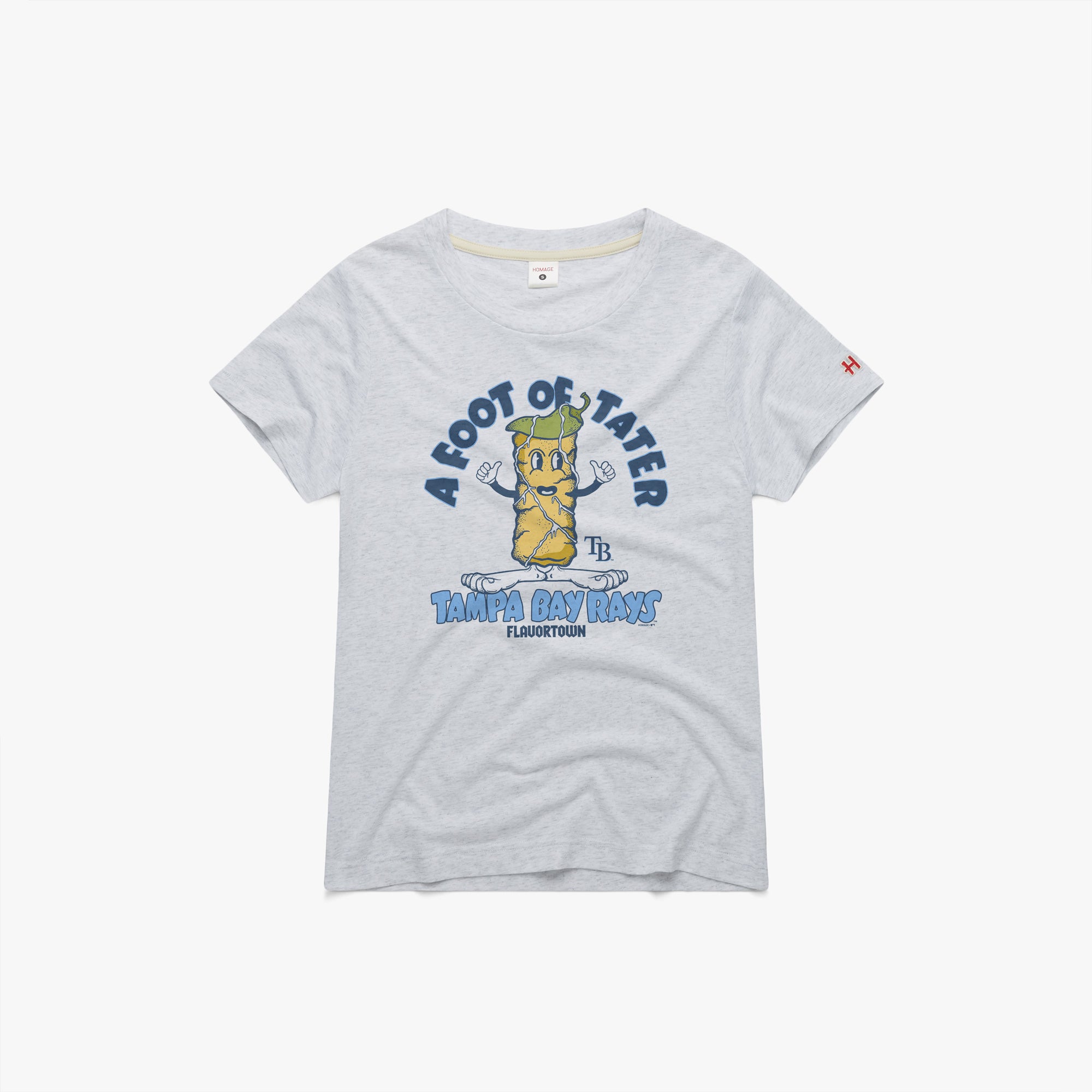 A foot of tater! Take a rockin’ road trip to MLB x Flavortown, our exclusive collab with the one and only Guy Fieri. Rep your Tampa Bay Rays and delicious Korean corn dogs with this super-soft women’s tee. Pay homage.