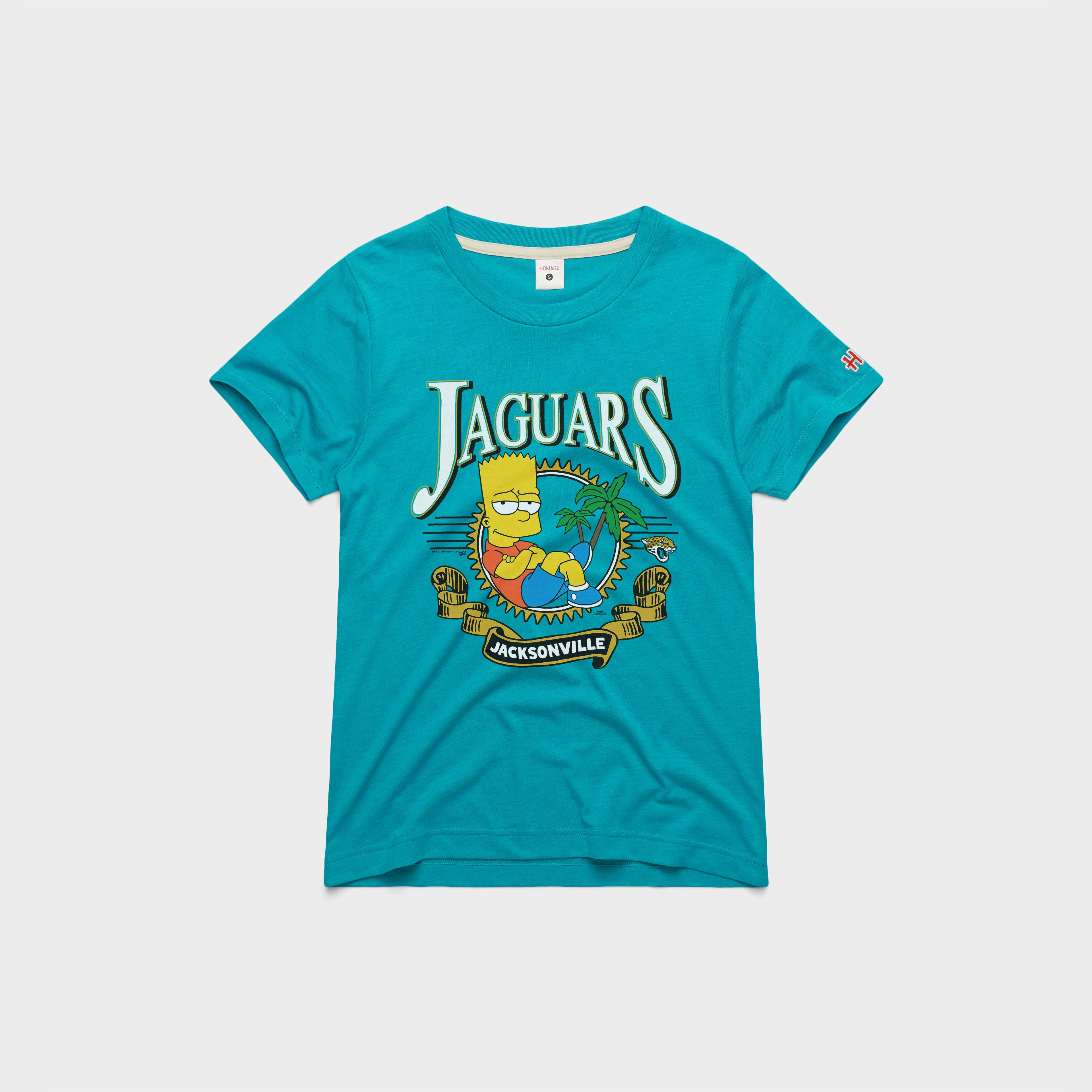 The ultimate cartoon rebel meets the ultimate football fanbase in a once_in_a_generation crossover. This time, Bart is calling the plays with a super-soft look for The Simpsons and your Jacksonville Jaguars.