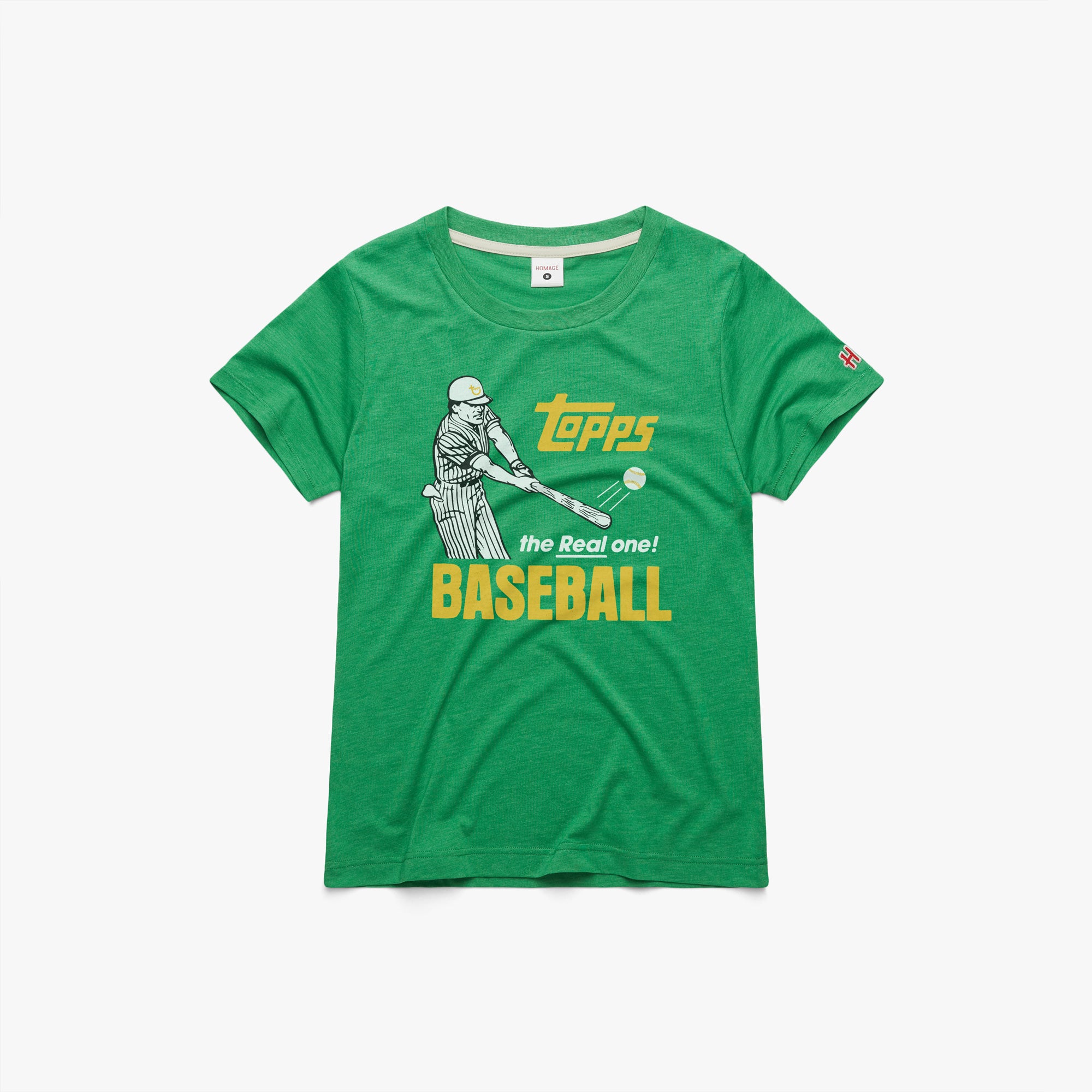 Home run! Make it a real one with a super-soft women’s tee for the original wax packet and the king of baseball cards. Swing for the fences with Topps, and pay homage.