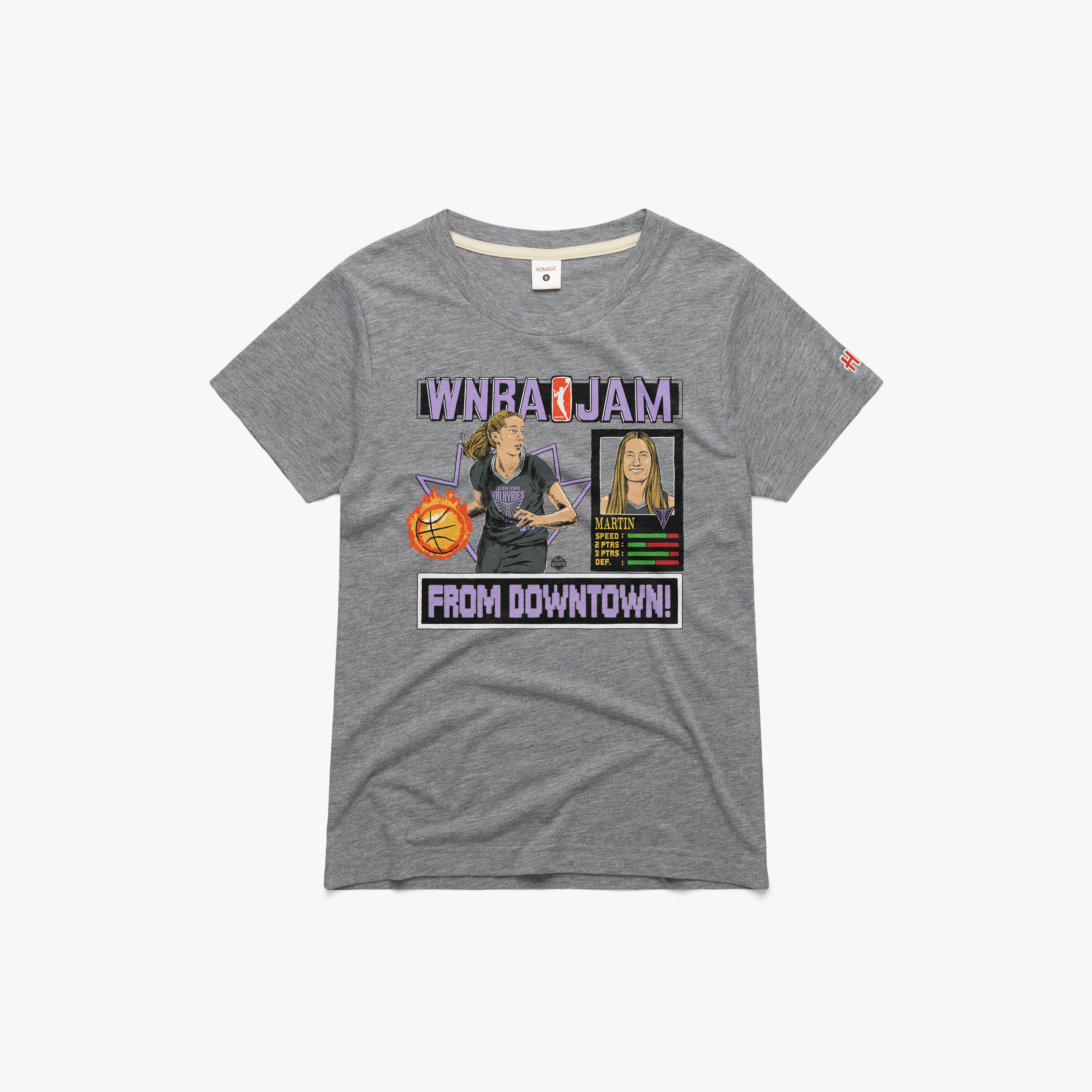 From downtown! Drop a quarter in the slot for our retro arcade-inspired WNBA Jam homage to one of the best in the game, Golden State Valkyries superstar Kate Martin. Boomshakalaka!